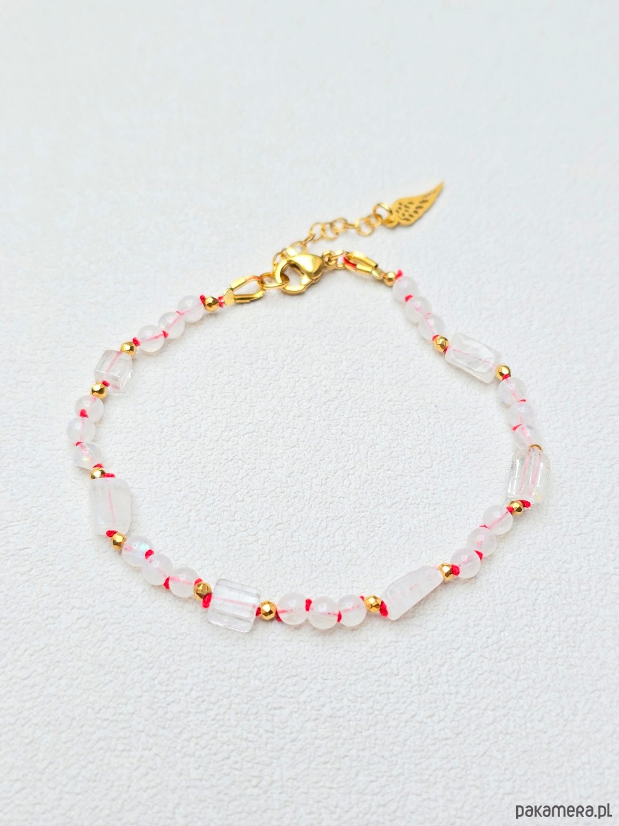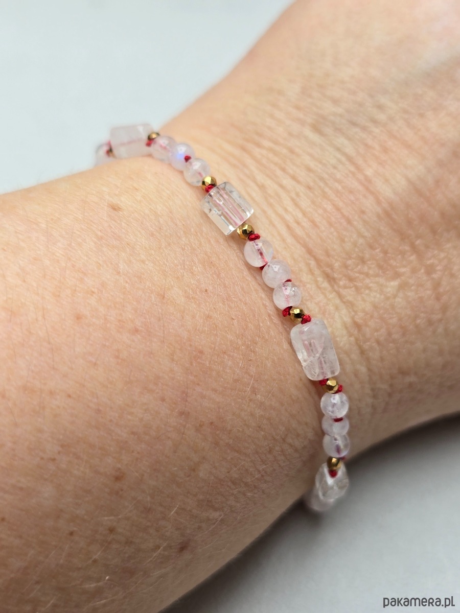 Wykorzystane kamienie: kamień księżycowy, kryształ górski, złocony hematyt. Średnica kamieni od 2 do 4mm.