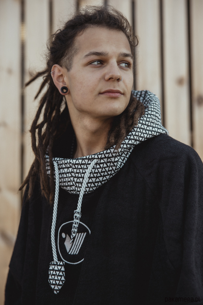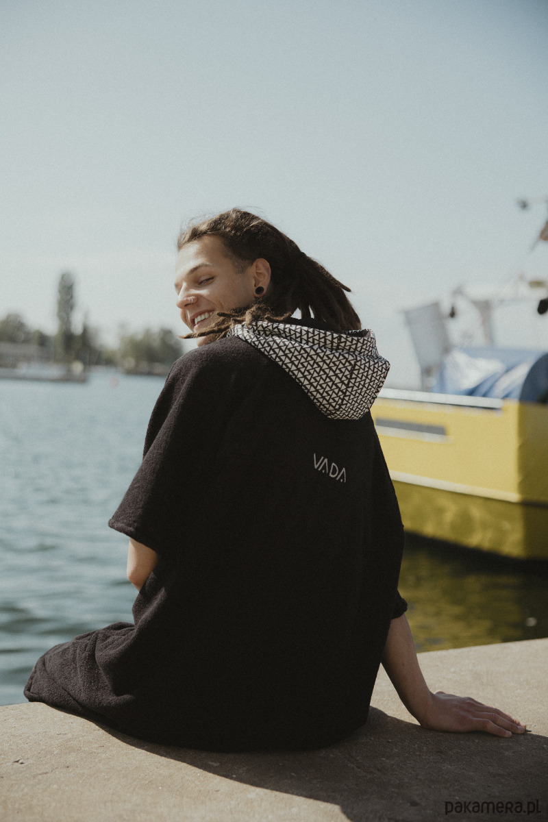 PONCZO AZTEC black dla zajawkowicza środowiskiem surf & skate, z pasją do surfingu, sportów wodnych, sauny, jacuzzi, morsowania, a przede wszystkim wolności.