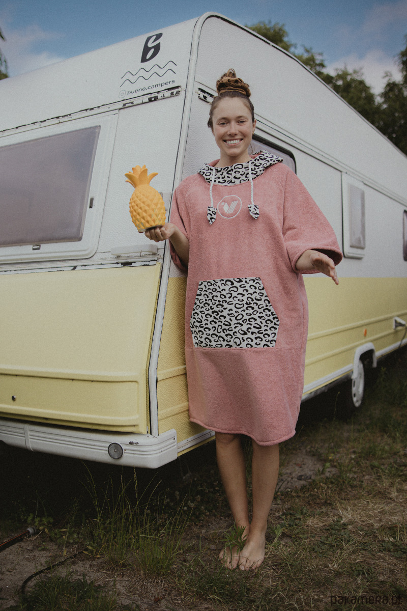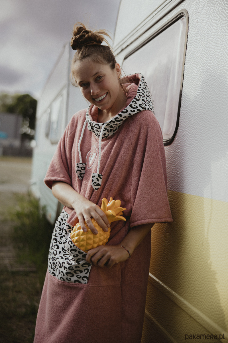 PONCZO DRAGON FRUIT dla zajawkowiczki środowiskiem surf & skate, z pasją do surfingu, sportów wodnych, sauny, jaccuzi, morsowania, a przede wszystkim wolności.