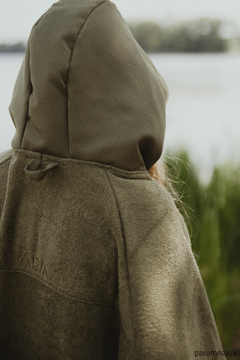 Ponczo dzięki obszernej formie ułatwi Ci swobodnie przebrać się w warunkach bez możliwości pójścia w ustronne miejsce. Osuszy Twoje mokre ciało, oraz osłoni Cię przed wiatrem. Włókna materiału jakim jest frotta ( połączenie bawełny z bambusem ) są wyjątkowo miłe w dotyku.