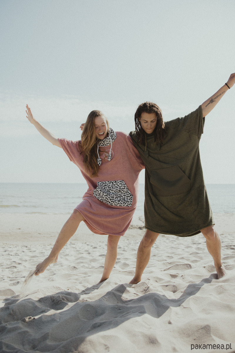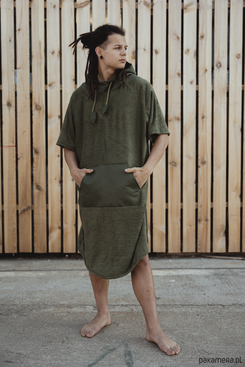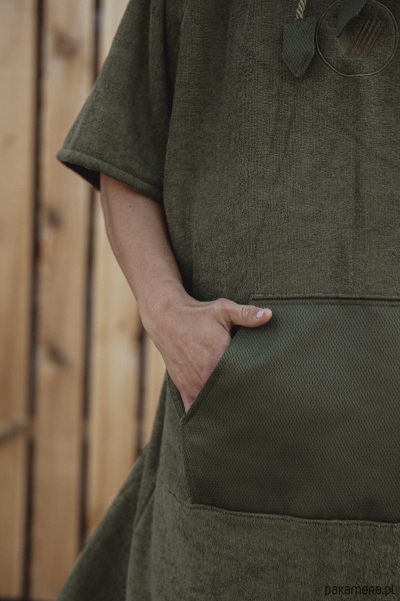 Ponczo dzięki obszernej formie ułatwi Ci swobodnie przebrać się w warunkach bez możliwości pójścia w ustronne miejsce. Osuszy Twoje mokre ciało, oraz osłoni Cię przed wiatrem. Włókna materiału jakim jest frotta ( połączenie bawełny z bambusem ) są wyjątkowo miłe w dotyku.