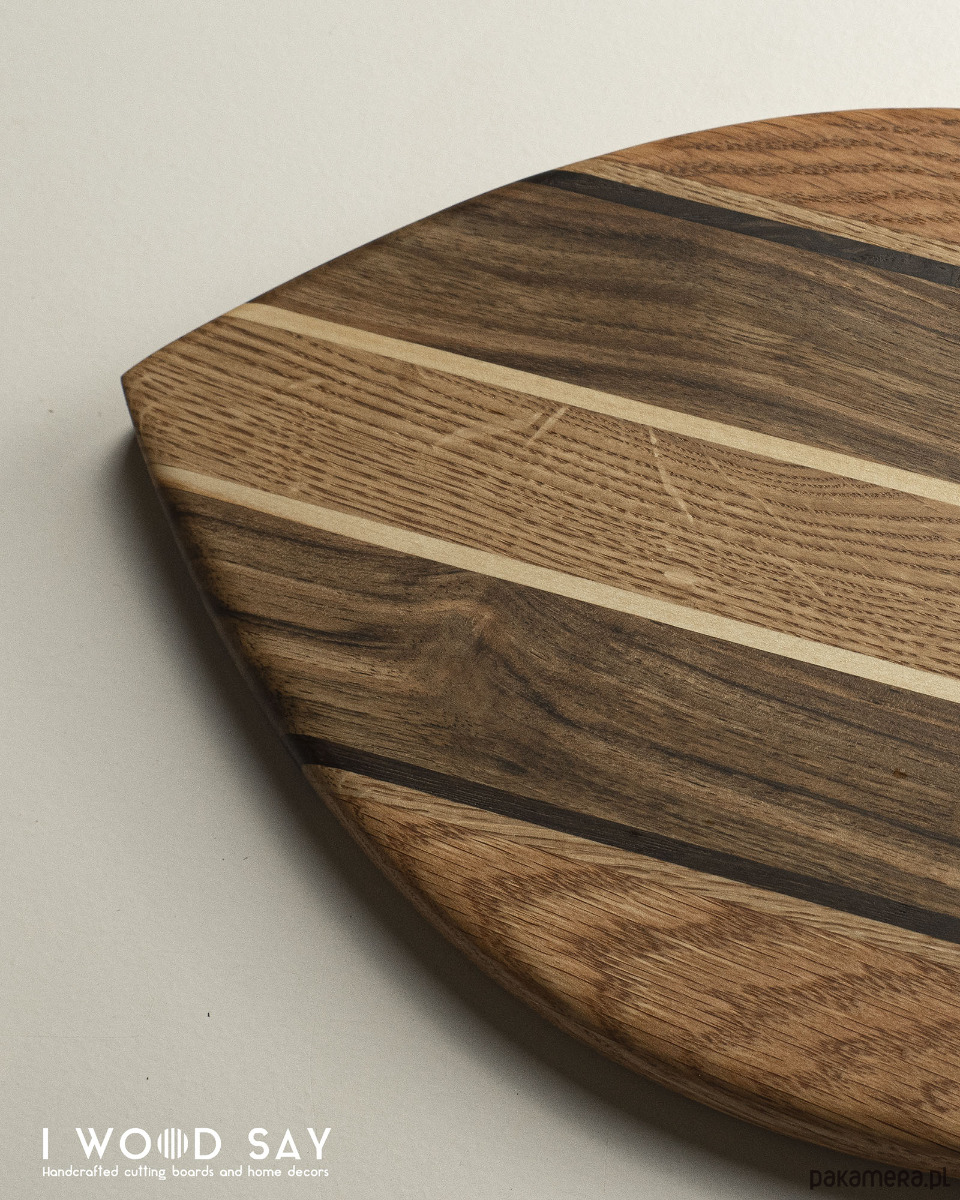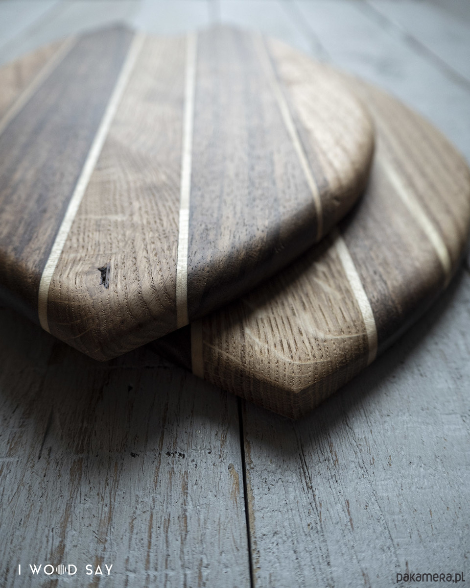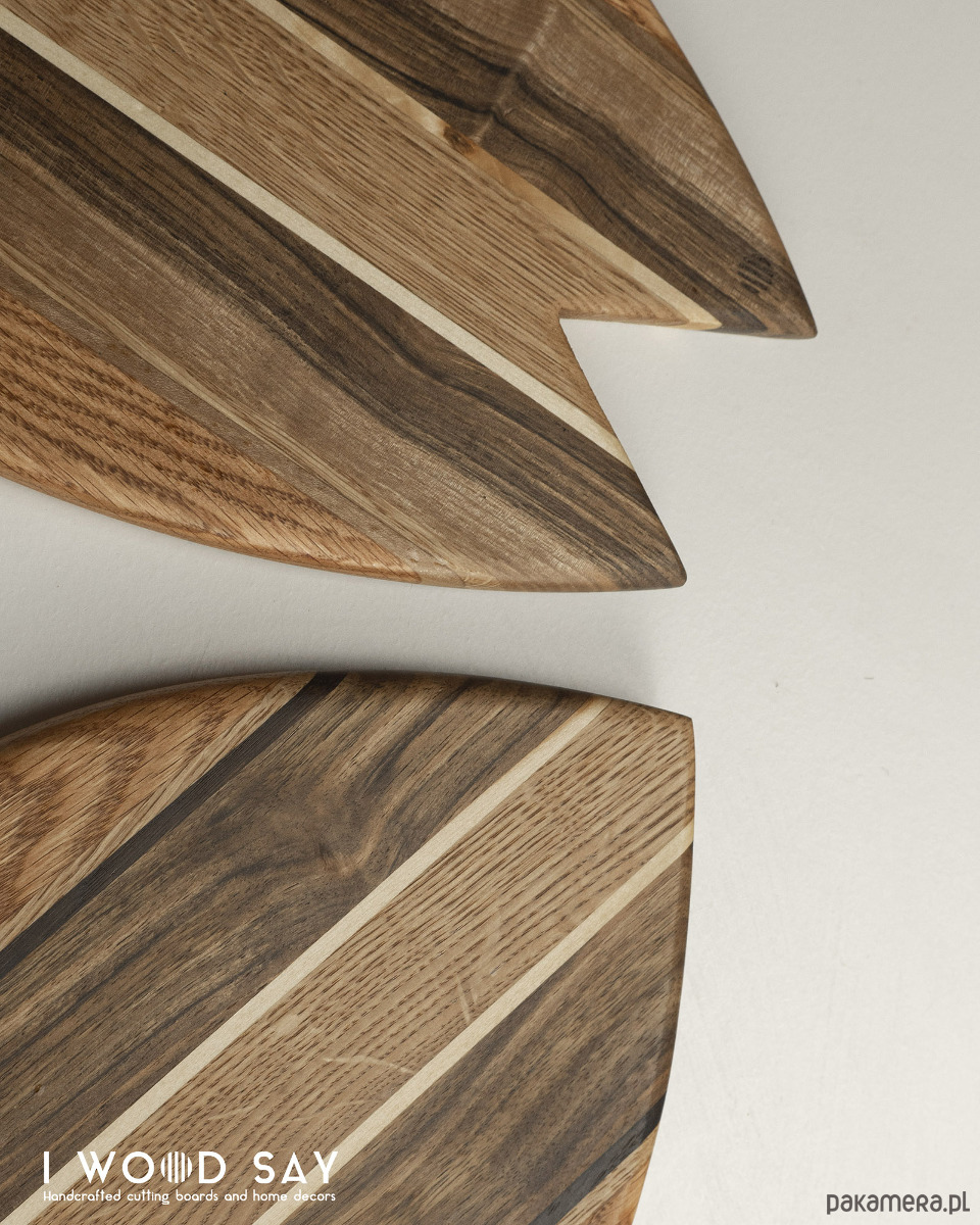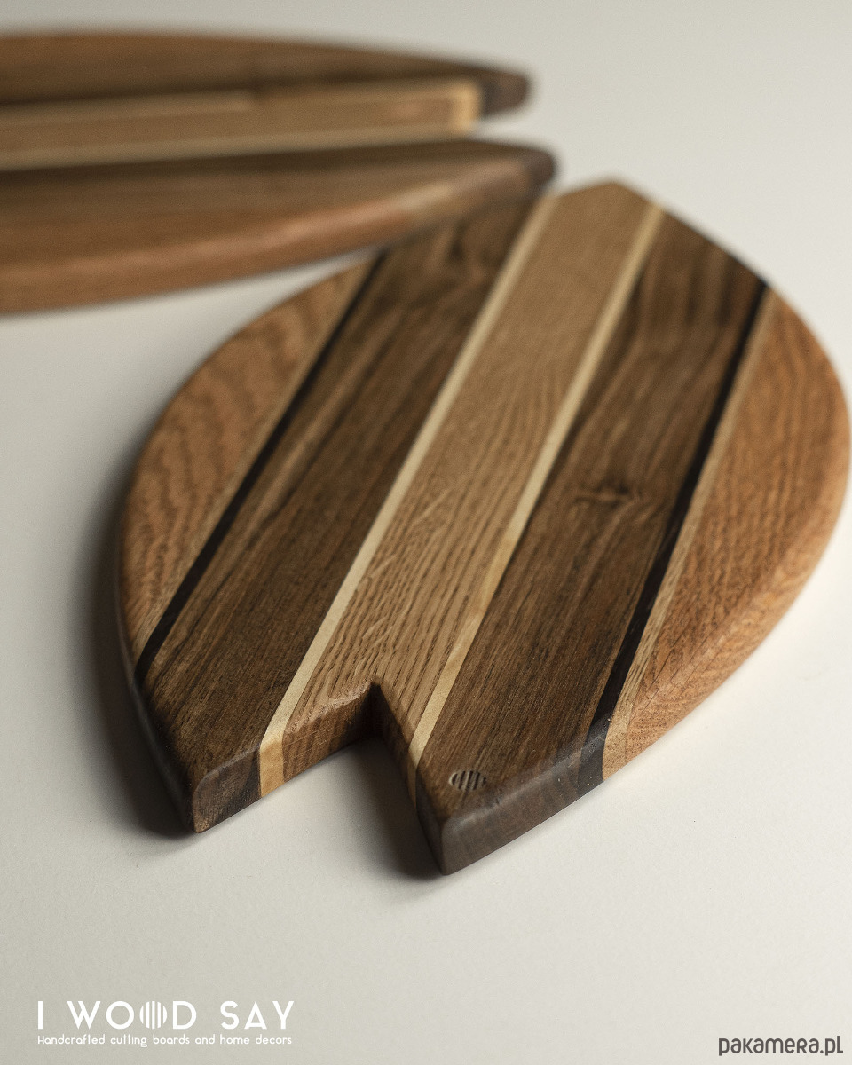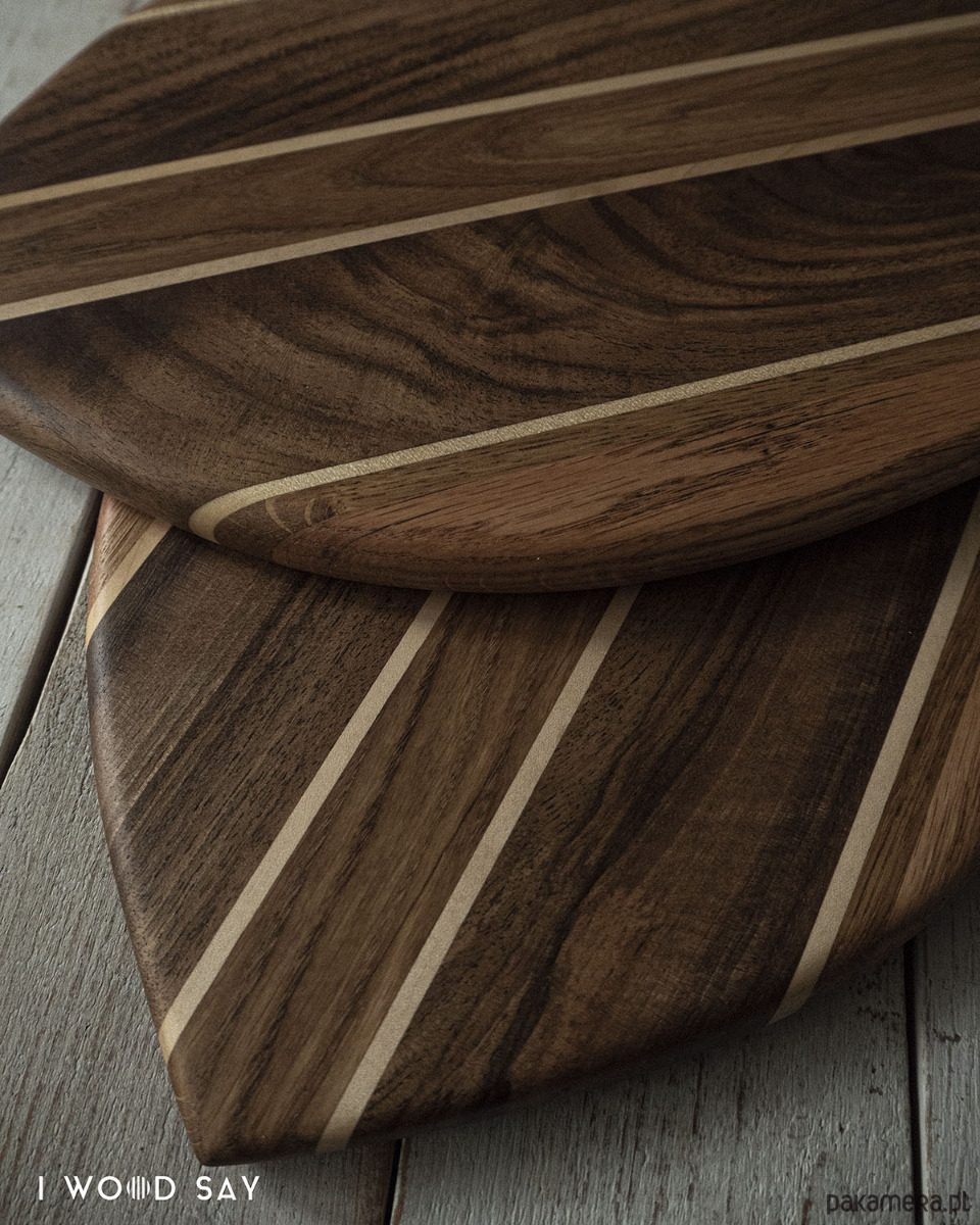 Drewniane tacki do serwowania inspirowane kształtami desek surfingowych.