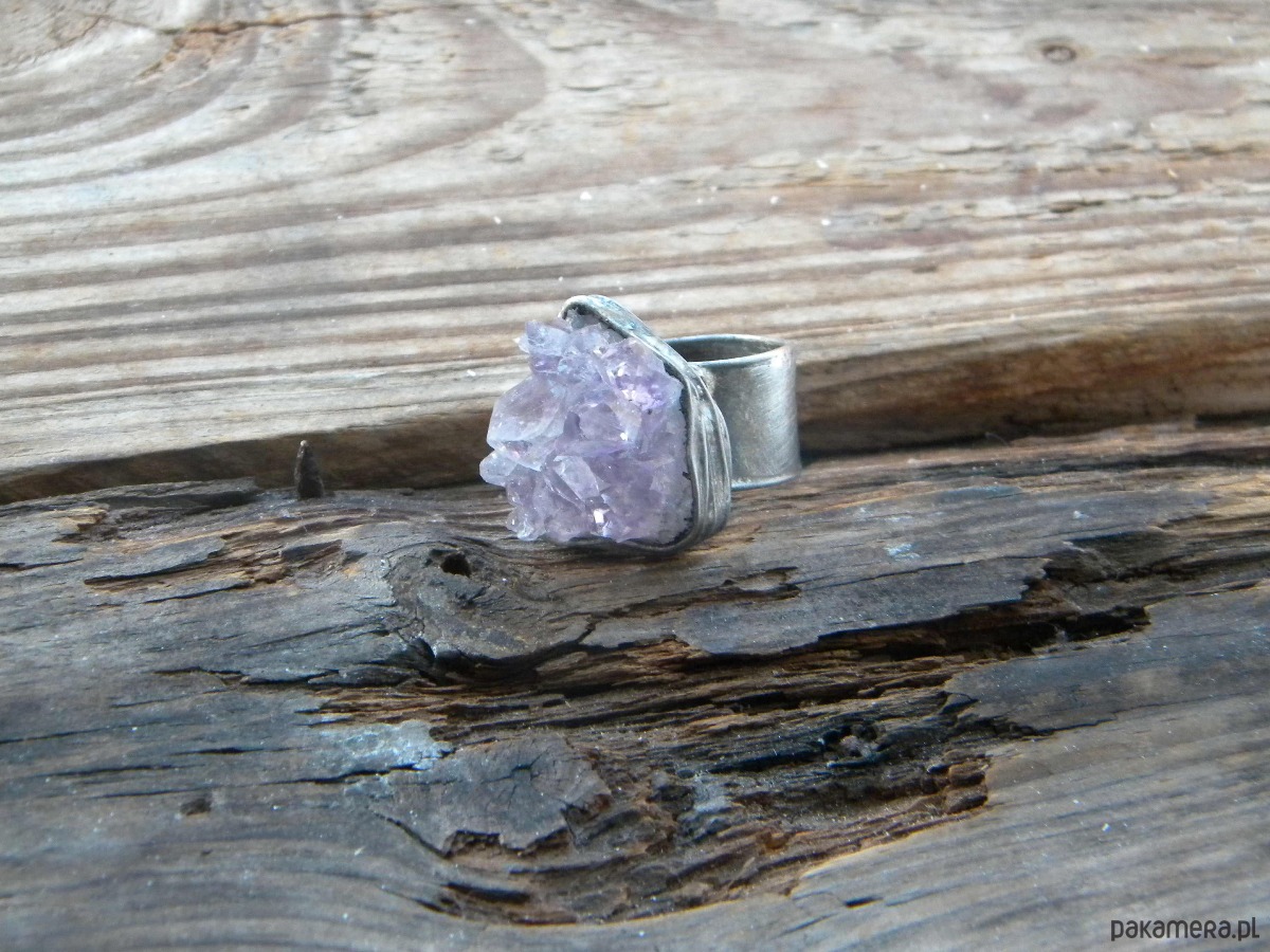 Surowy ametyst - pierścionek