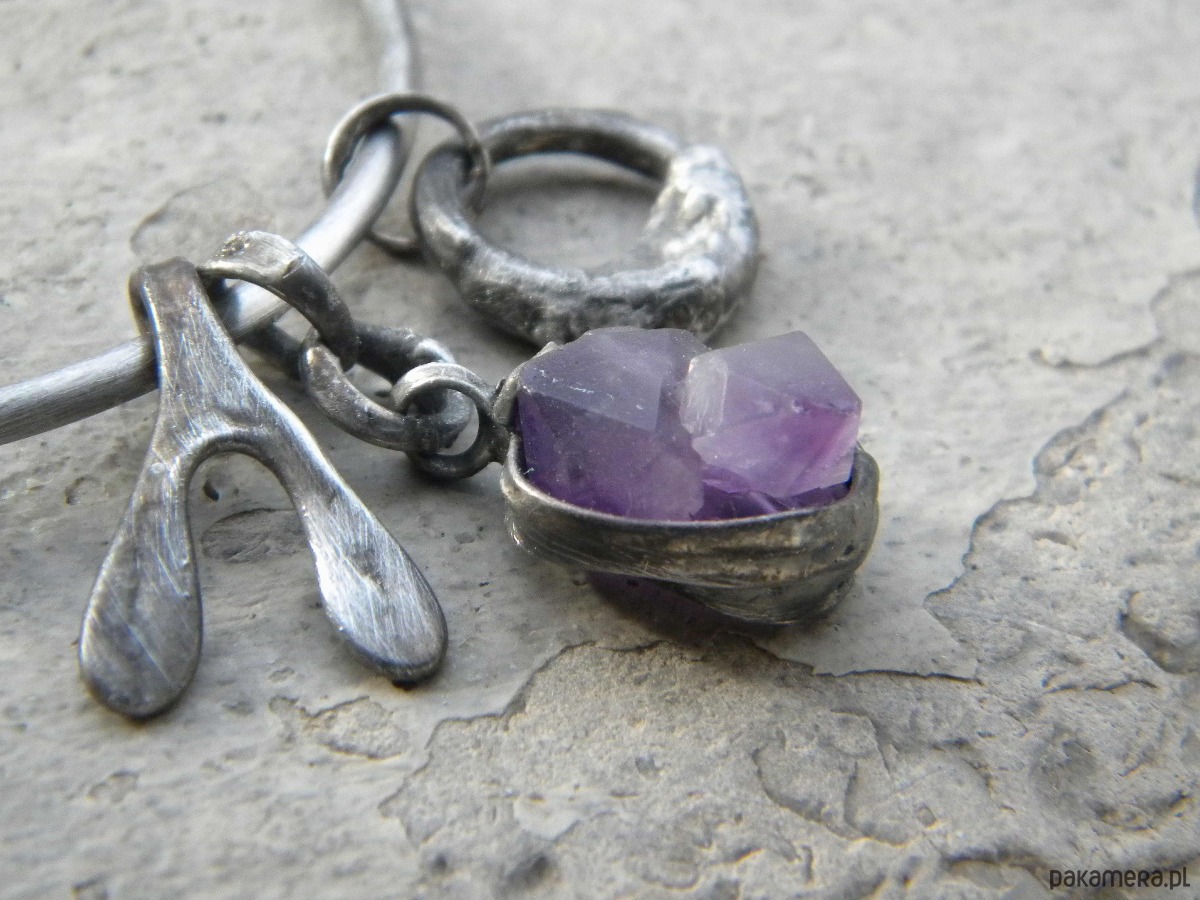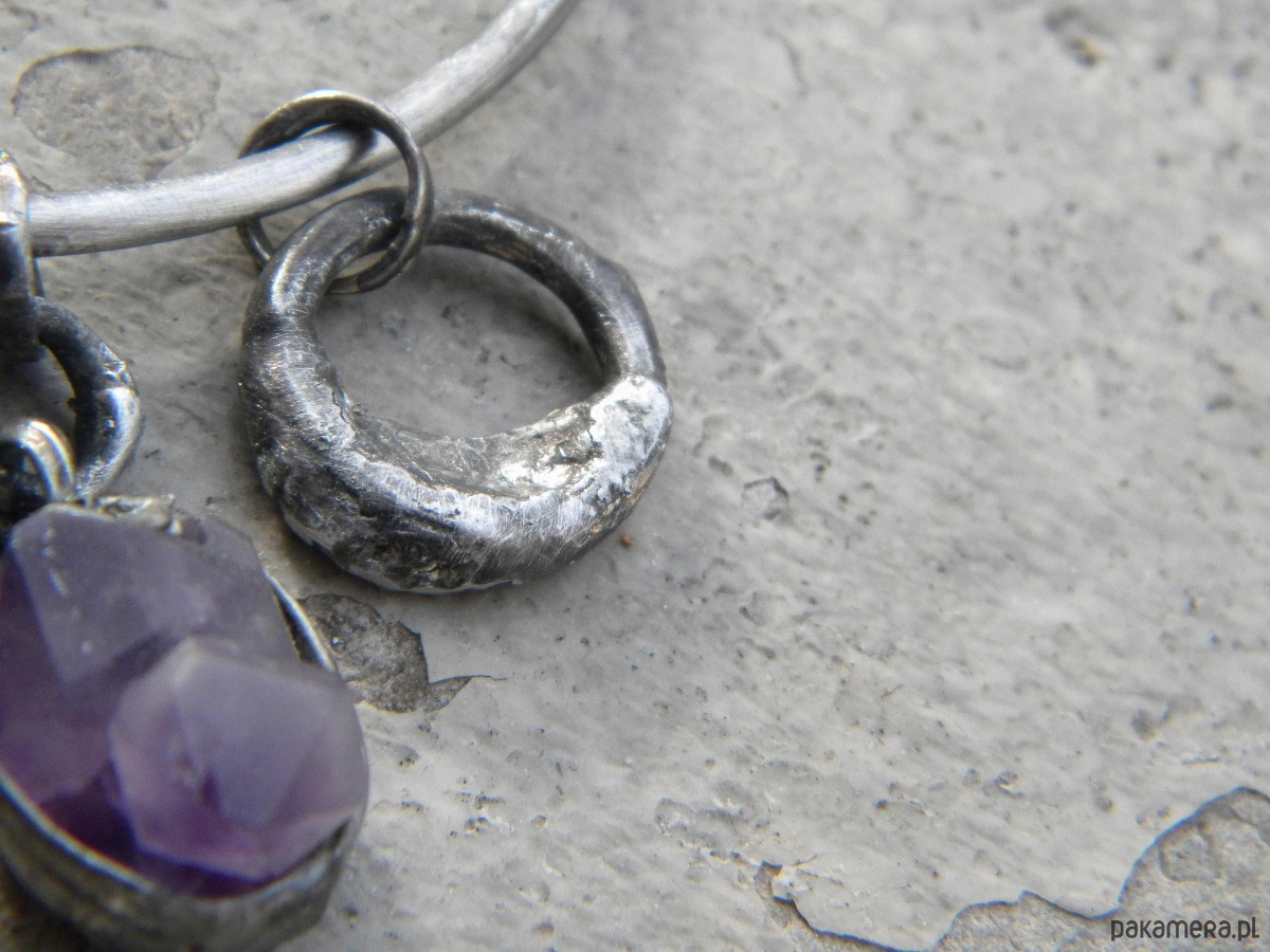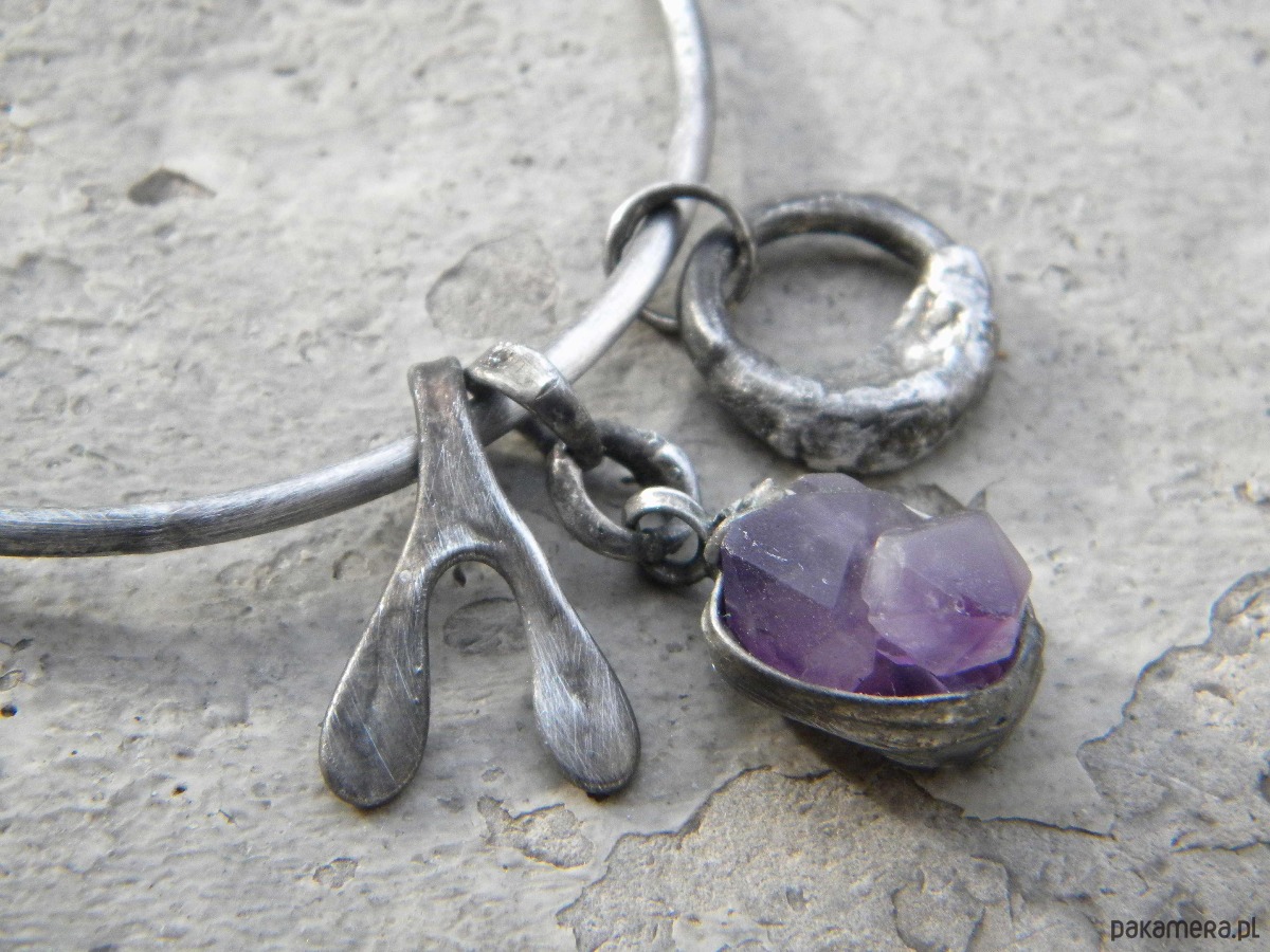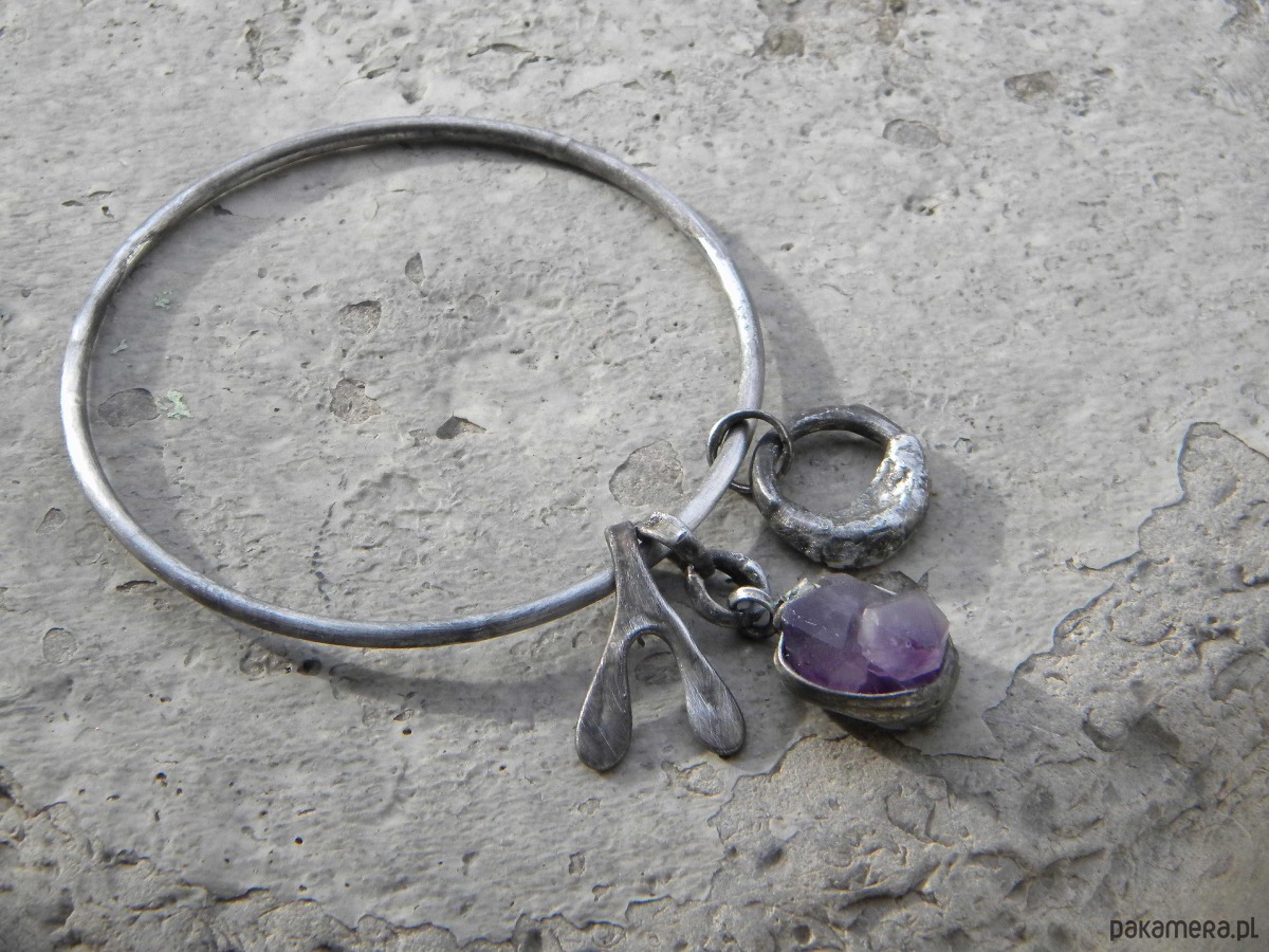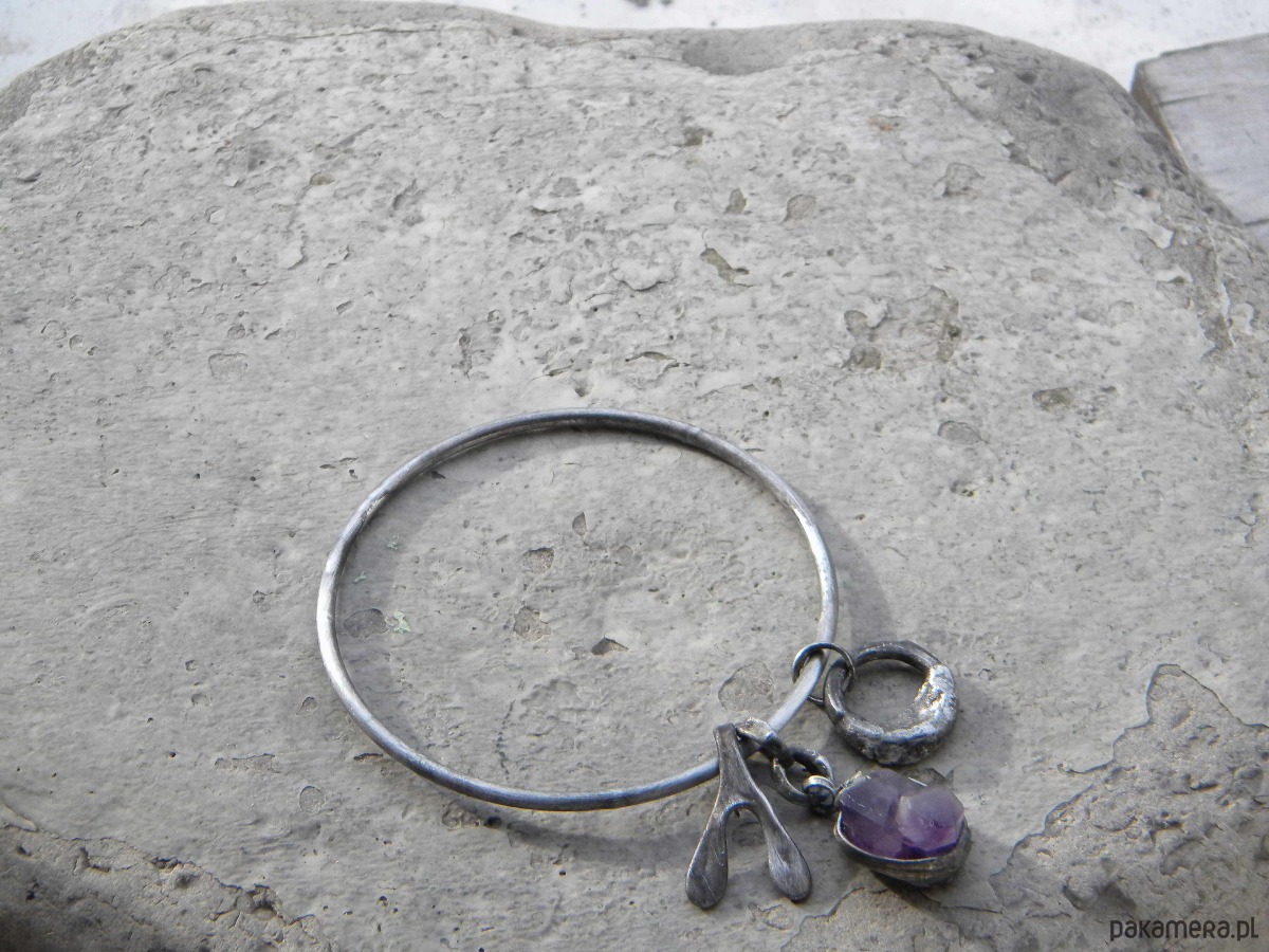 bransoletka wykonana z ocynowanej miedzi i surowego ametystu