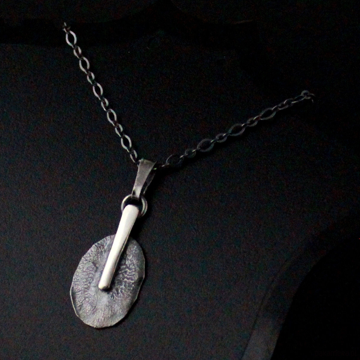 Surowy blask - surowy srebrny wisiorek w mocno oksydowanym srebrze