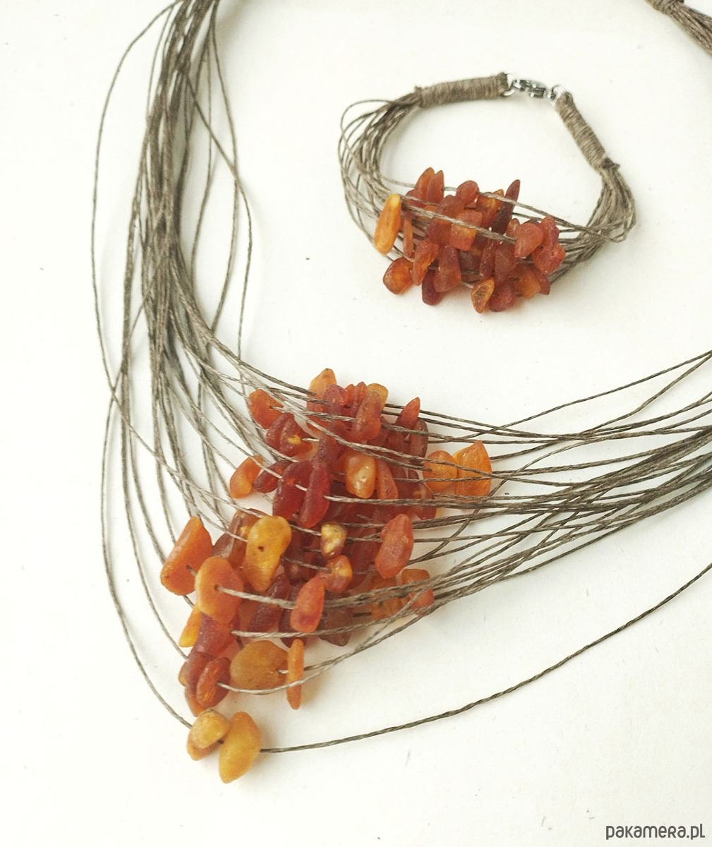 Dzikość natury i ponadczasowe bursztyny w komplecie lnianej biżuterii