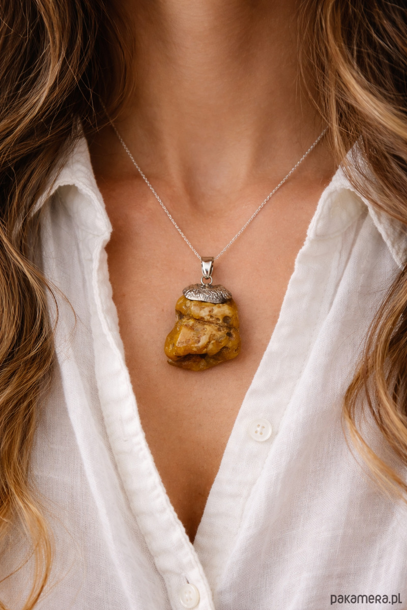 Surowa zawieszka z bursztynu - Naturalny wisiorek bursztynowy - Naszyjnik