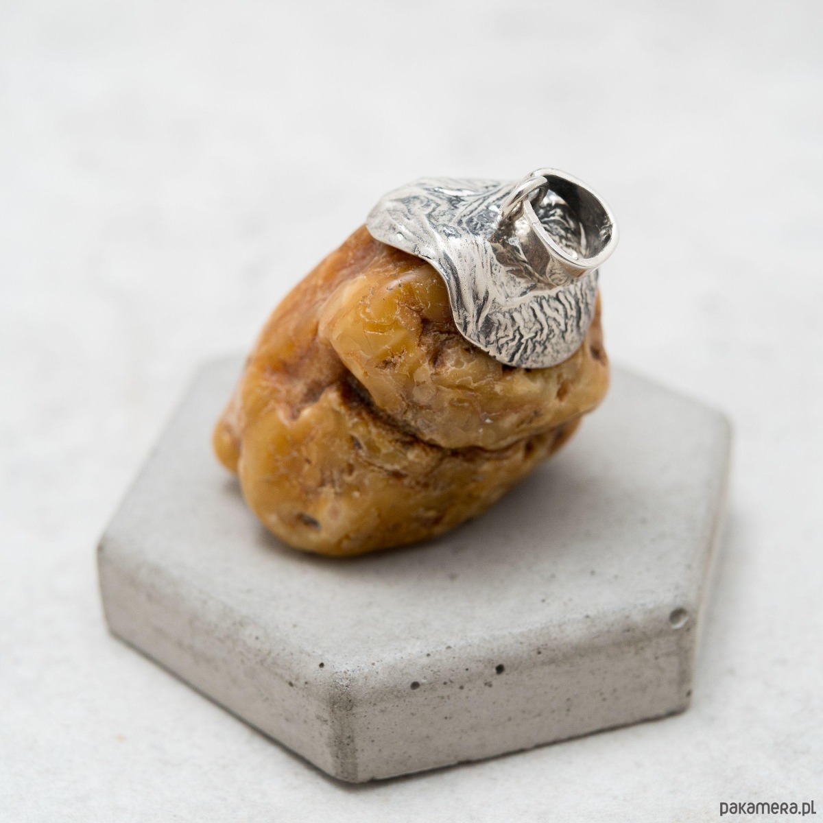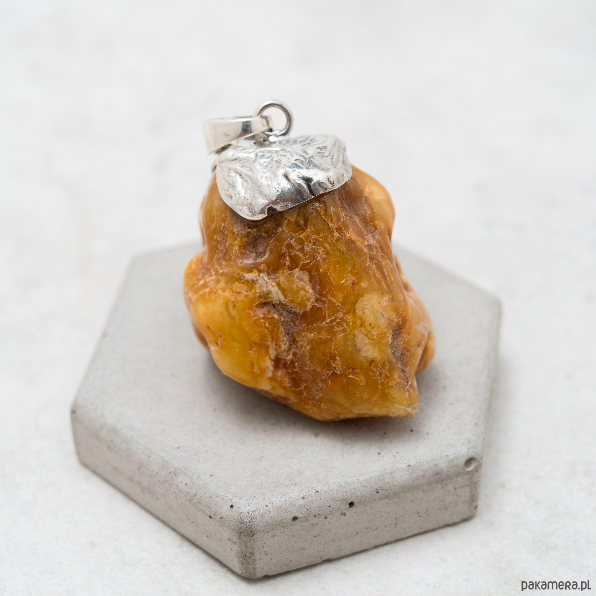 Surowy wisiorek z bursztynu w srebrnej oprawie