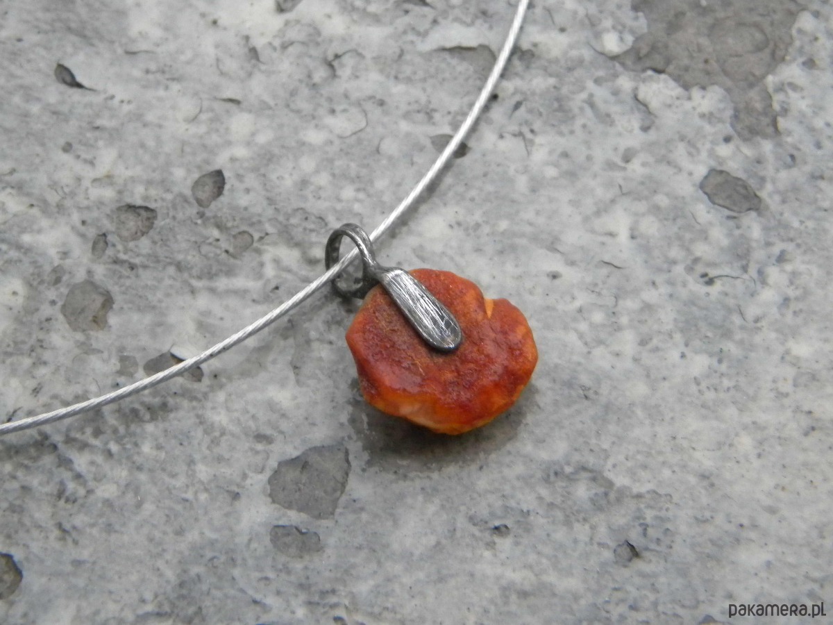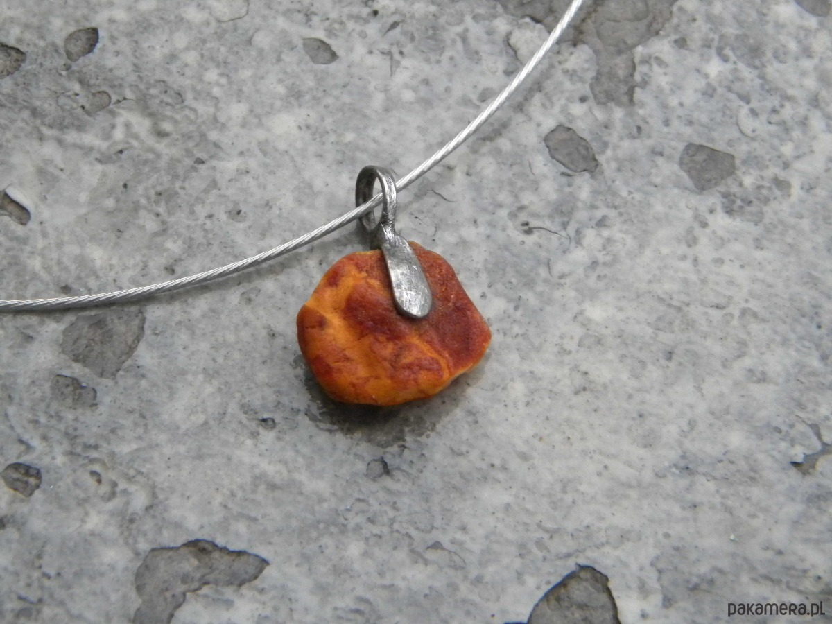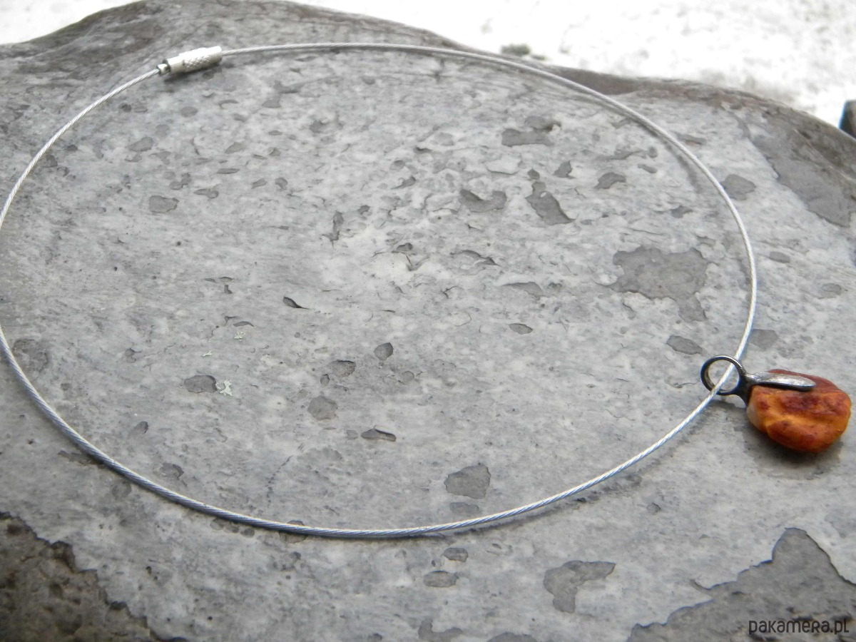 surowy bursztyn oprawiony w ocynowaną miedz.