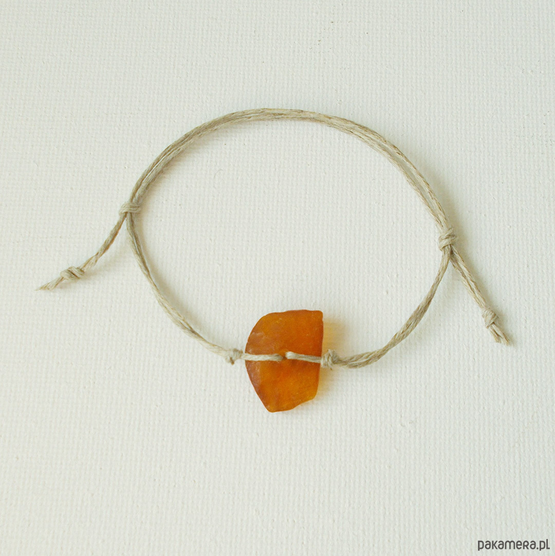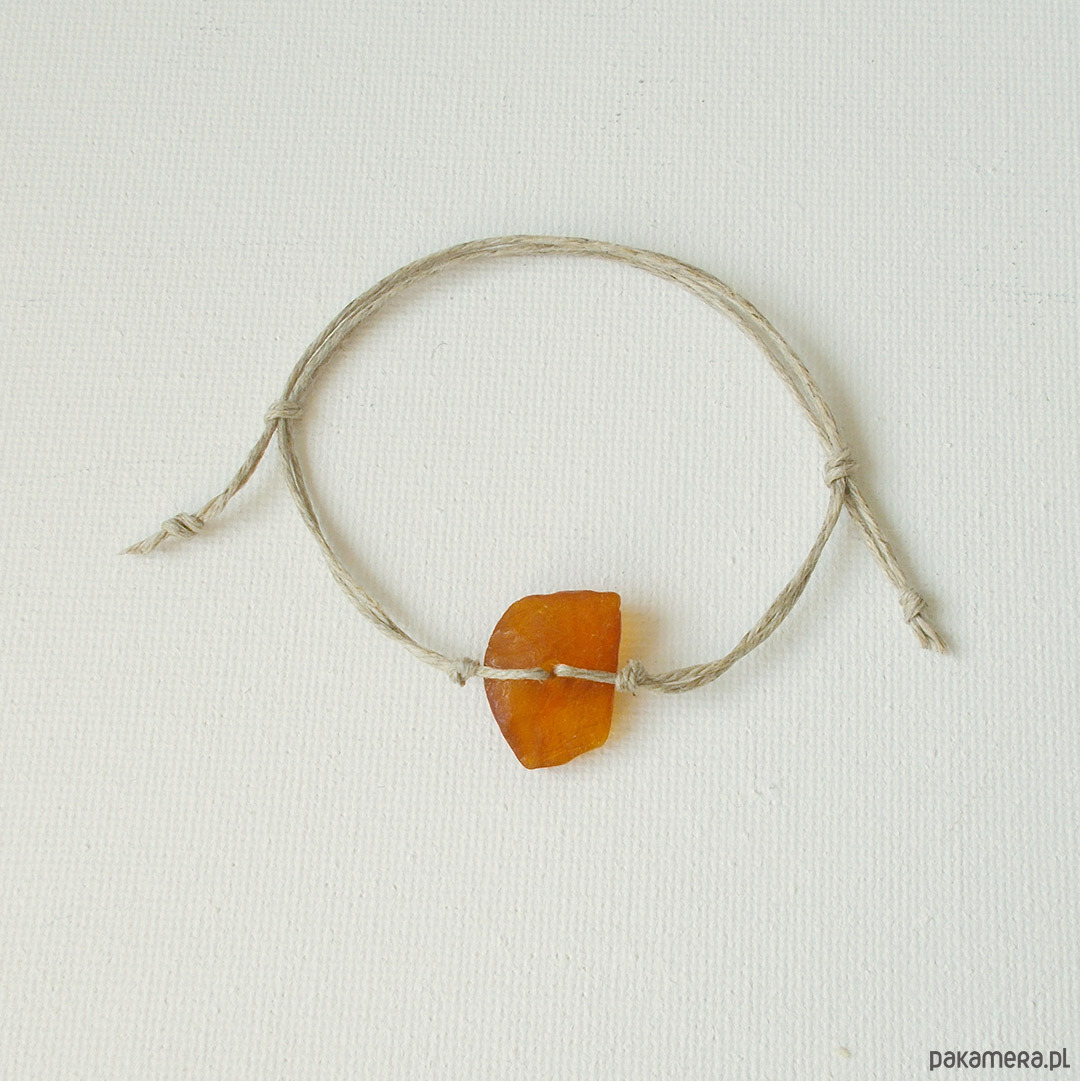 Bransoletka: Bursztyn bałtycki surowy, niepolerowany na naturalnym lnie