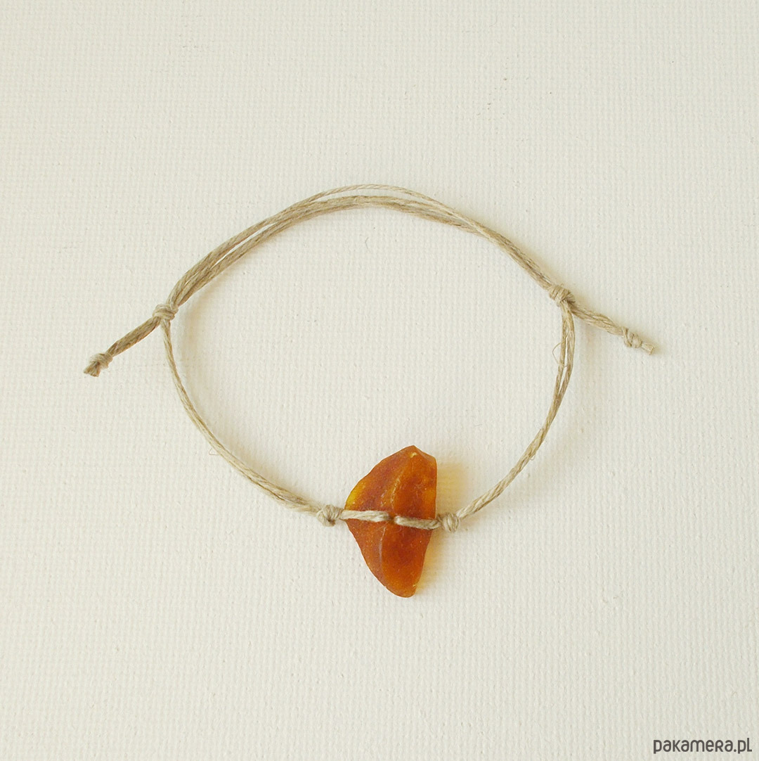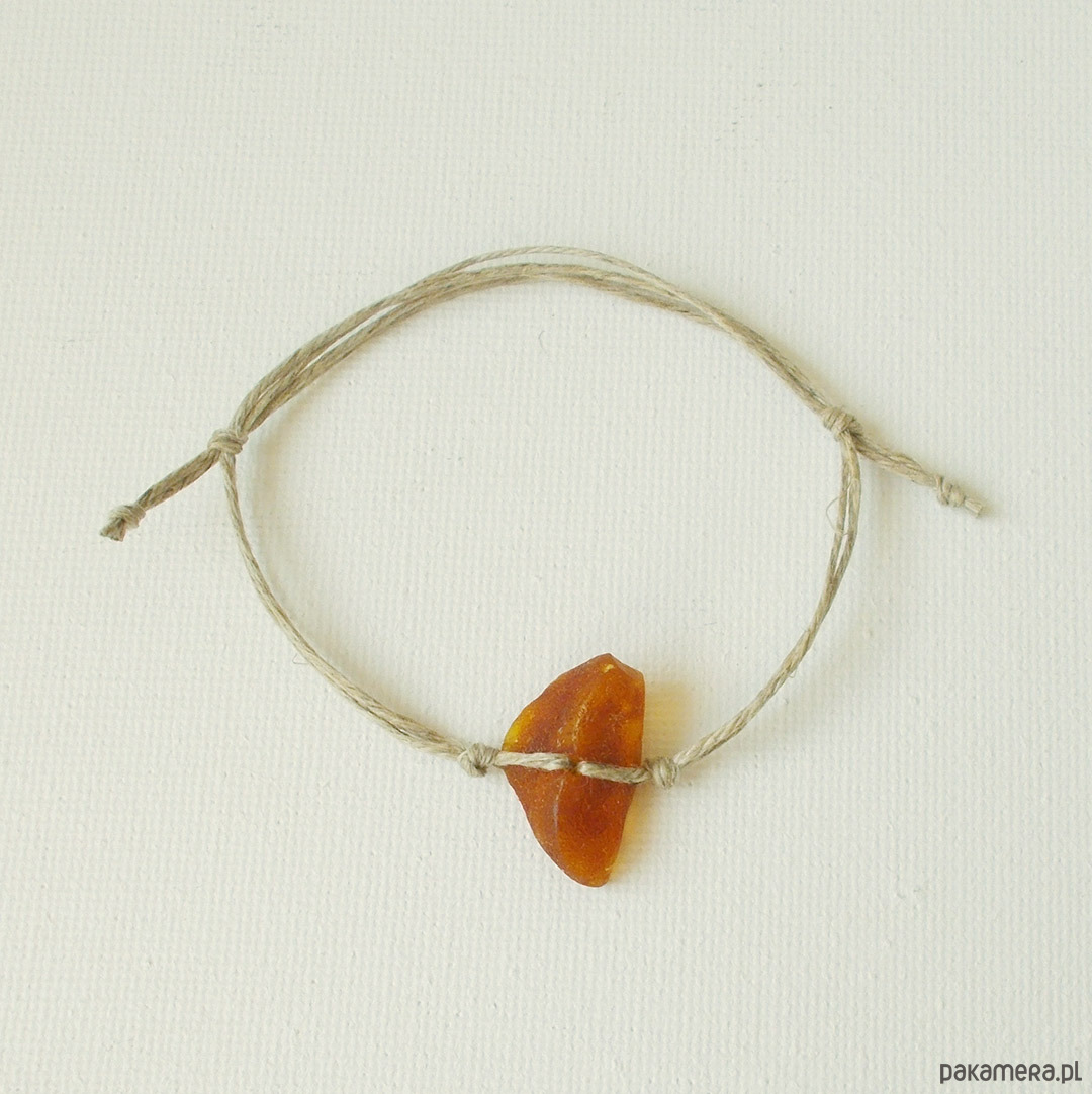 Bransoletka: Bursztyn bałtycki surowy, niepolerowany na naturalnym lnie