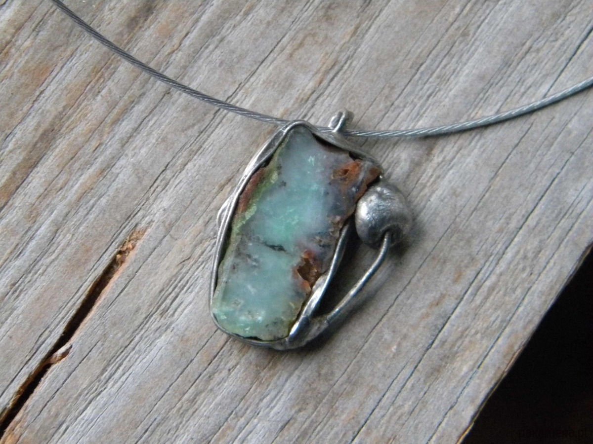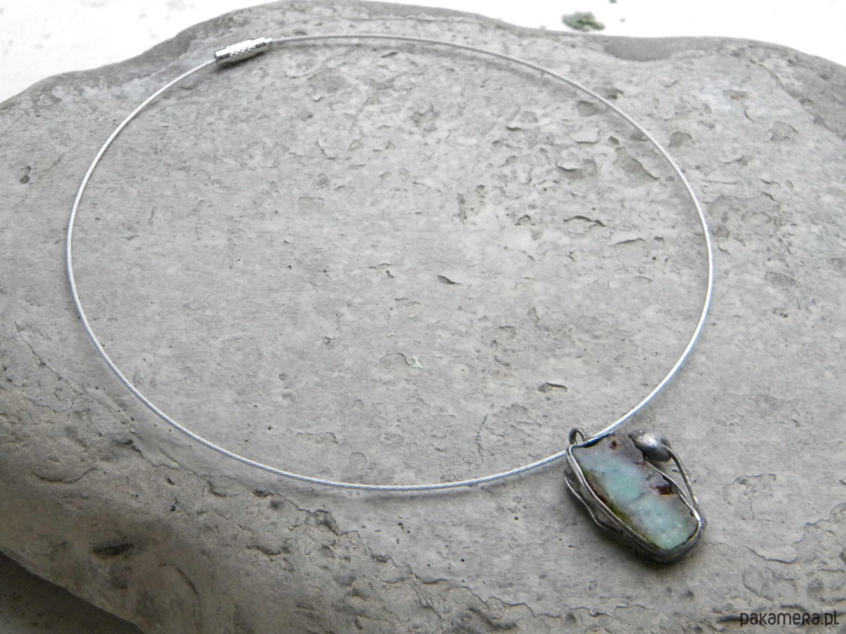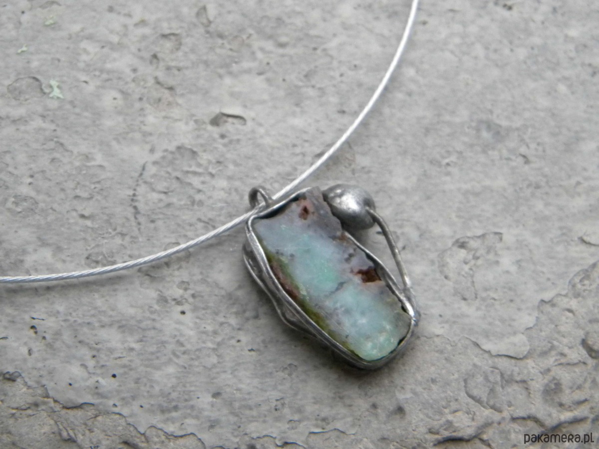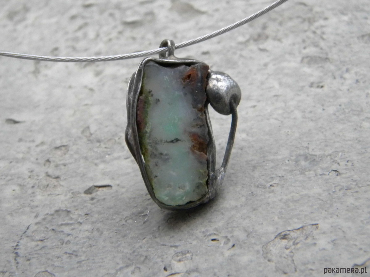 surowy chryzopraz w oprawie z ocynowanej miedzi