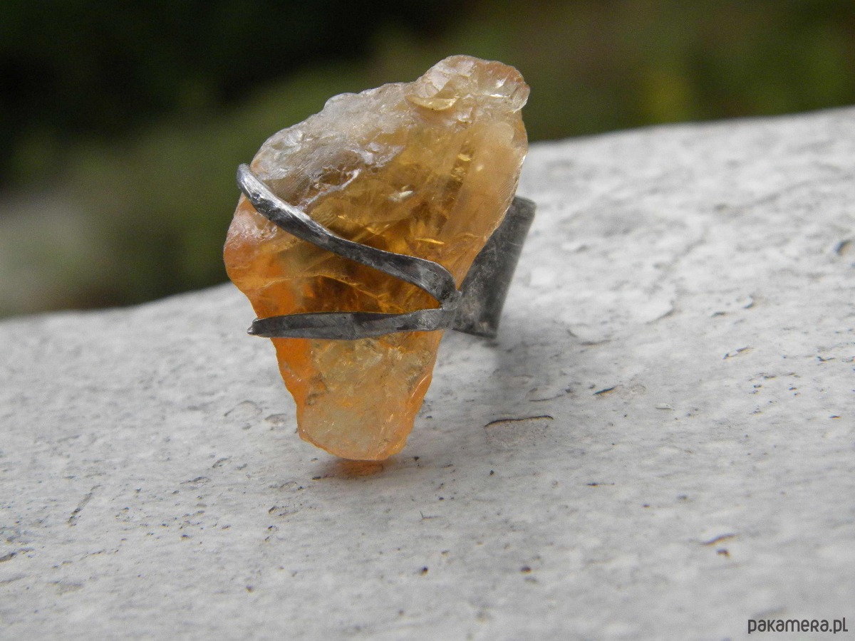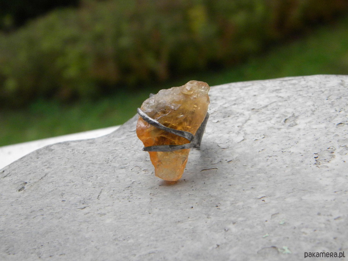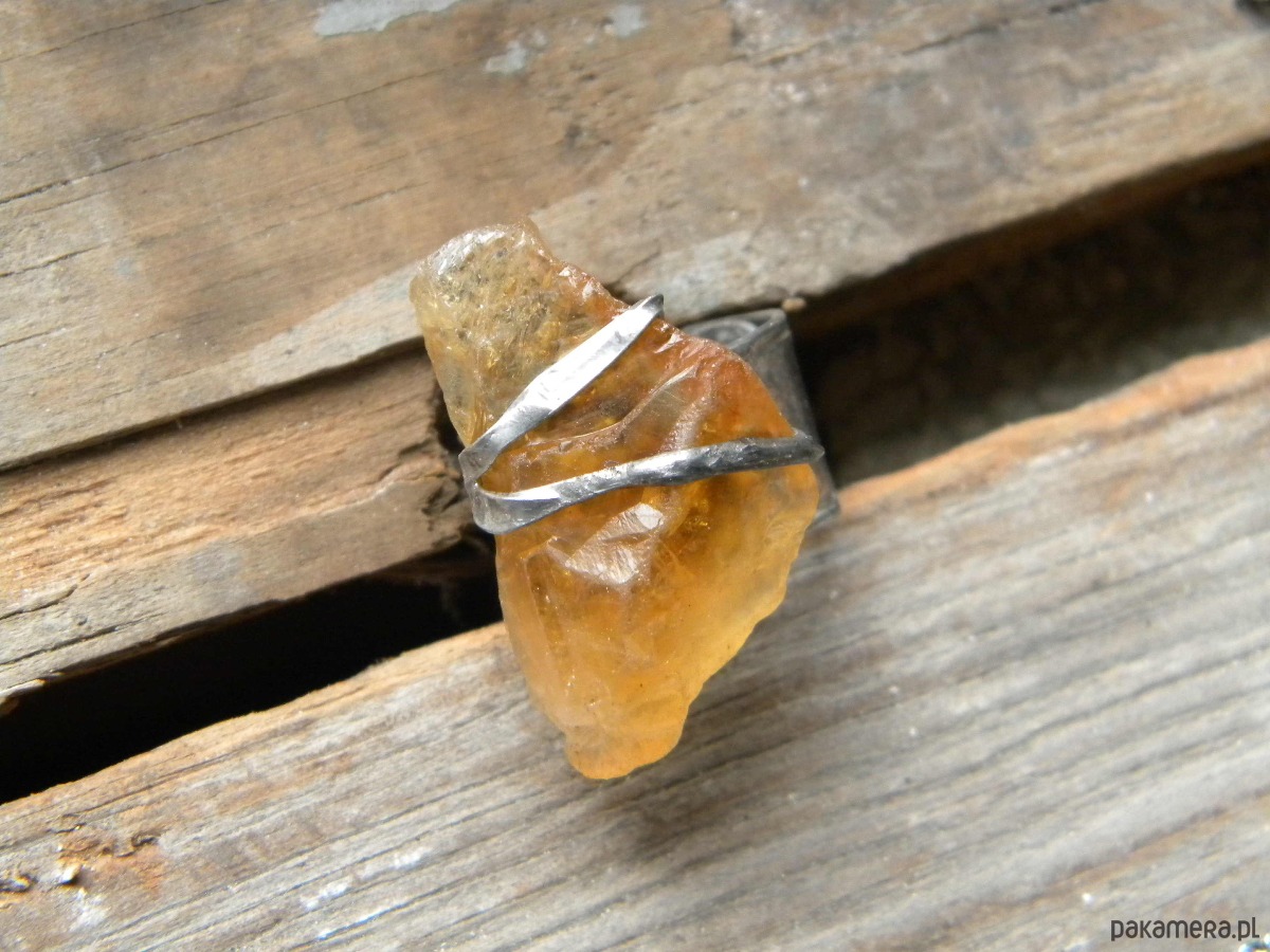 Pierścionek. surowy cytryn w ocynowanej miedzi.