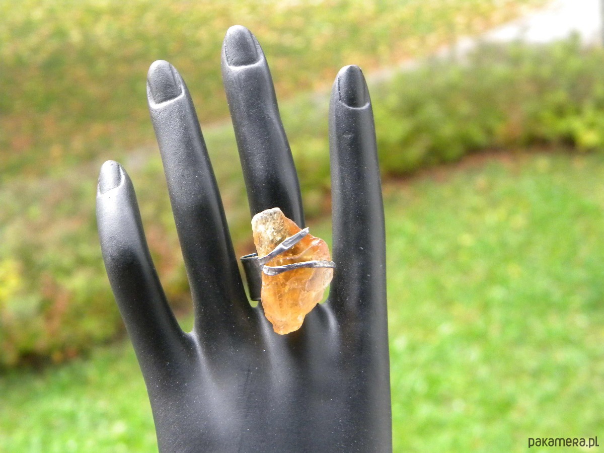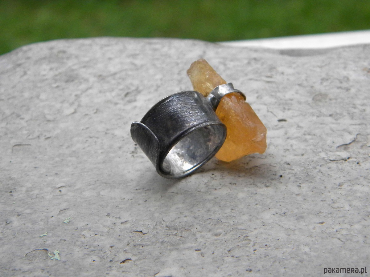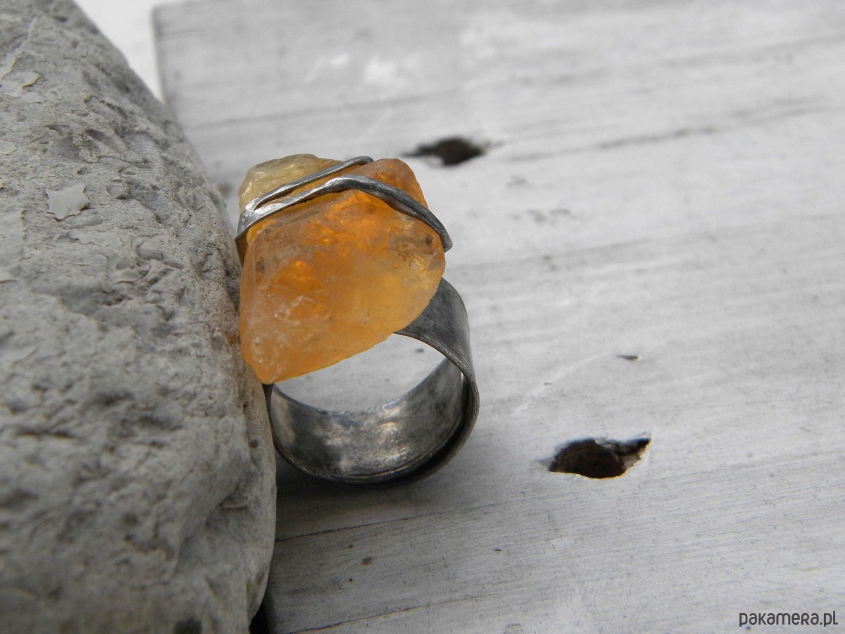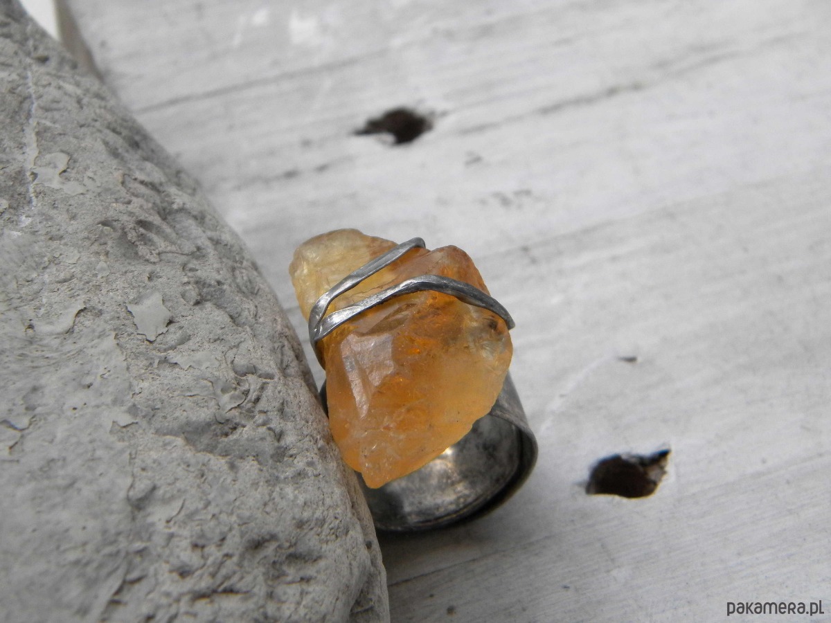 Pierścionek. surowy cytryn w ocynowanej miedzi.