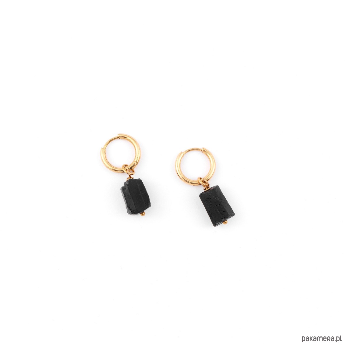 Surowy czarny Turmalin - kolczyki koła z pozłacanej stali szlachetnej