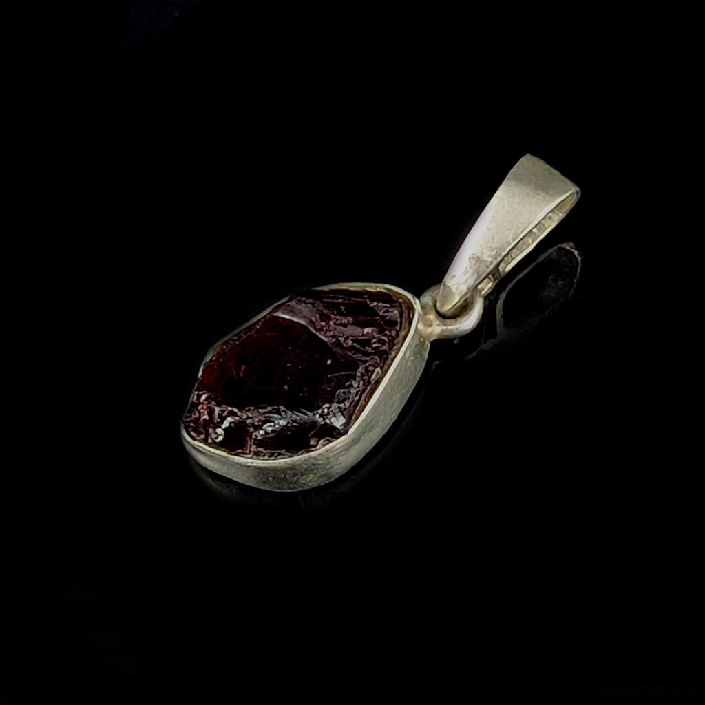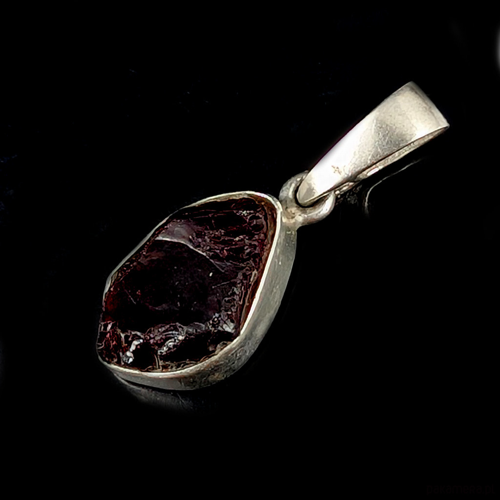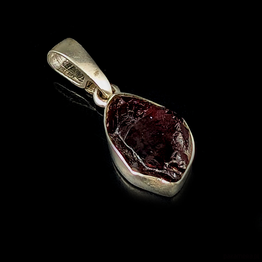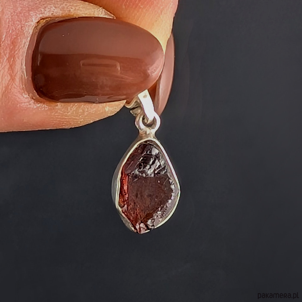 Piękny, surowy granat w oprawie srebra próby 925. Wymiary 12 x 8 mm. Długość wisiorka 23 mm. Waga 1,6 grama. Polecam, uroczy drobiazg.