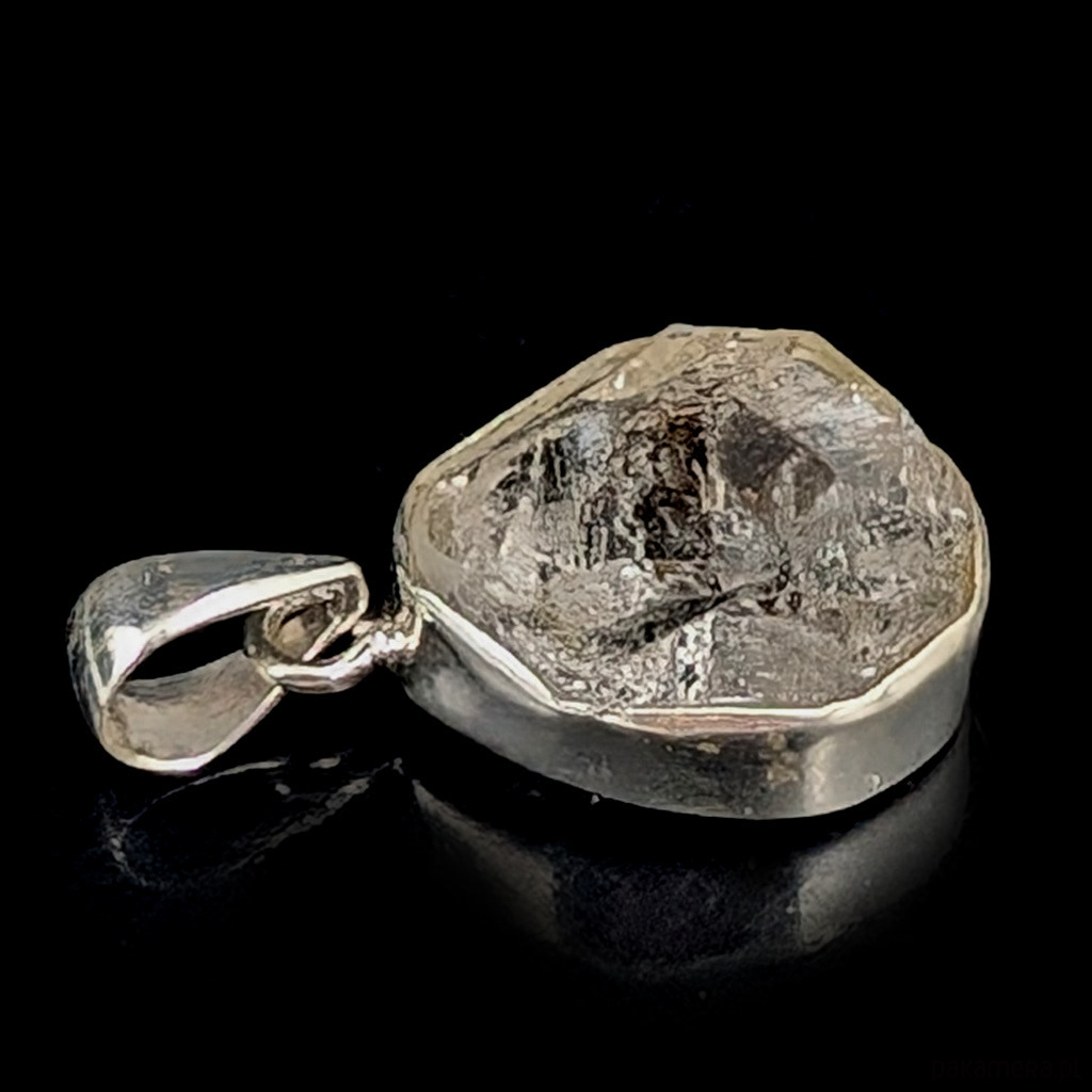 Wisior z oprawionym w srebro próby 925 najczystszym kryształem górskim potocznie zwanym herkimerem- niezwykle czysta odmiana nazywana też diamentem z Herkimer (od nazwy miejsca występowania, okręg Herkimer w stanie Nowy Jork). Wymiary oprawy kamienia 20 x 18 mm . Długość max 30 mm. Wewnątrz krystalicznego minerału ciekawe, czarne wrostki. Waga 6 g. Wisiorek wykonany przez dostawcę kamieni, zostanie zapakowany w eleganckie pudełeczko