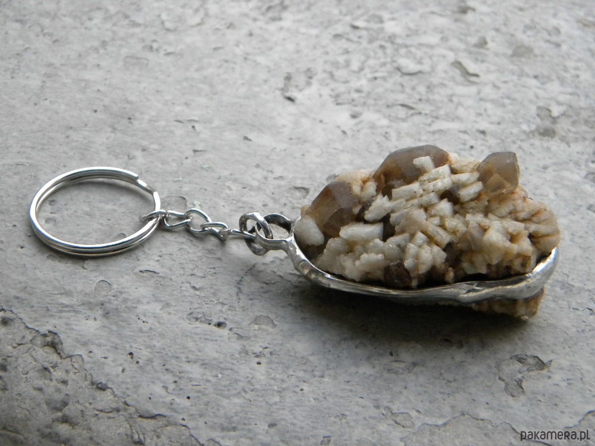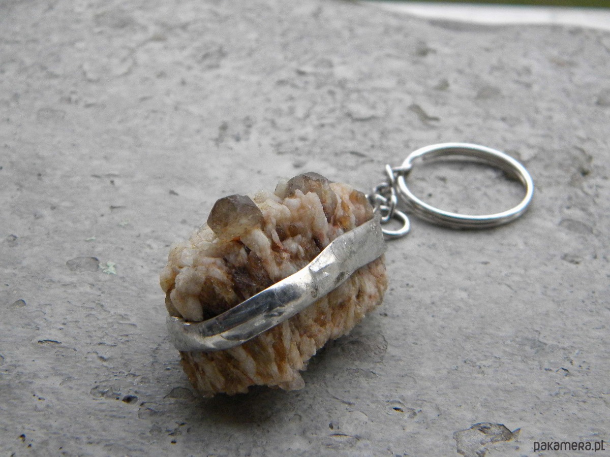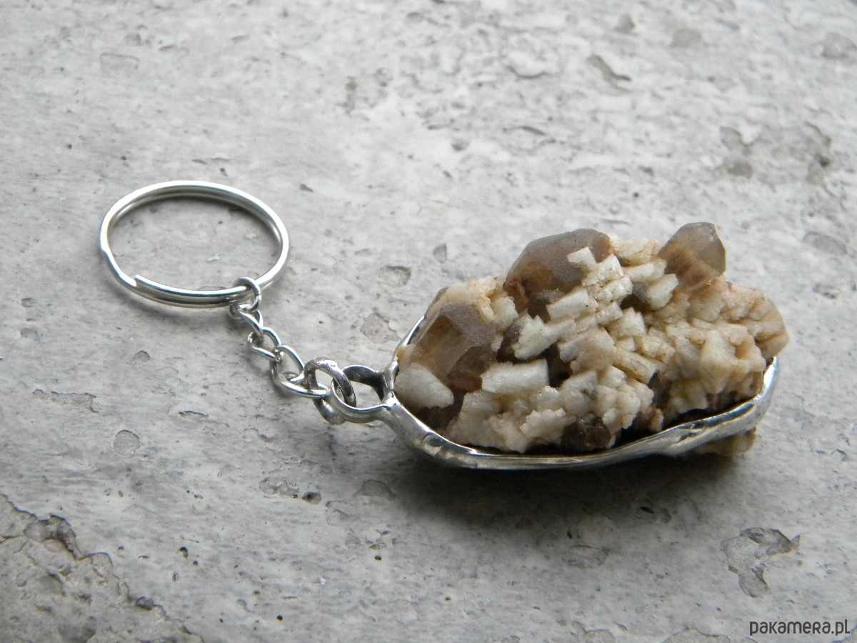 brelok do kluczy z surowych kryształów kwarcu dymnego