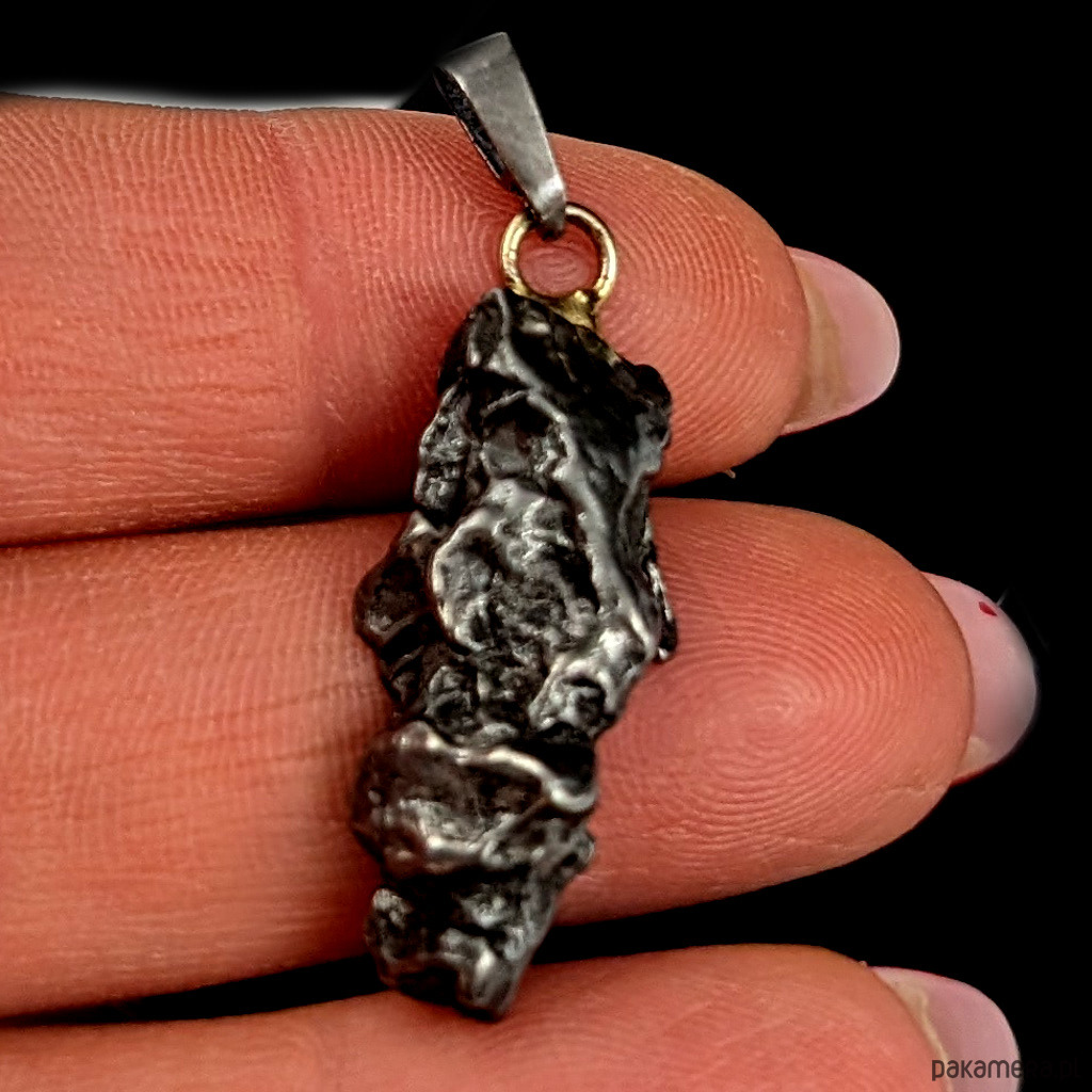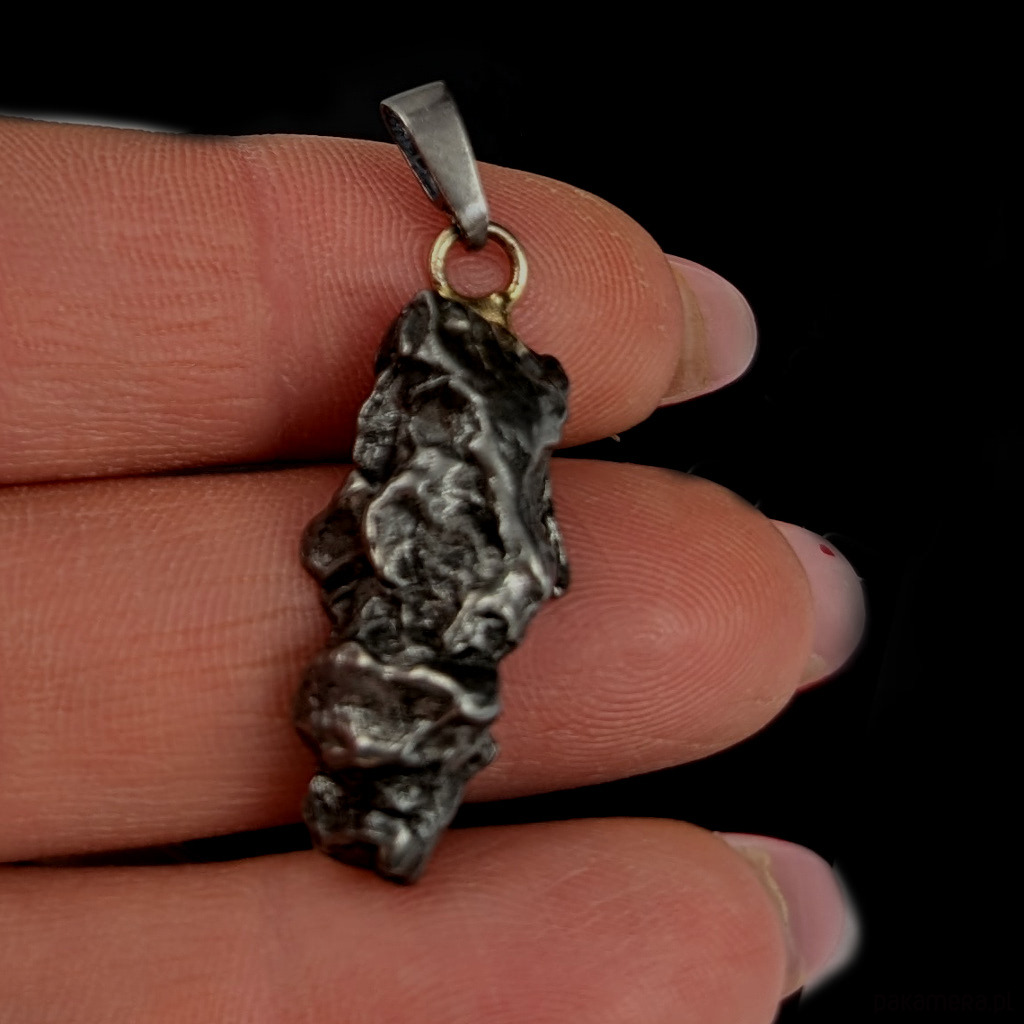 Wisior z okazałym meteorytem żelaznym Campo del Cielo, który znaleziono w 1576 roku w Argentynie. Krawatka srebro 925, oksydowane. Uniwersalny, dla niego lub dla niej. Wymiary 27 x 13 mm. Długość max 37 mm. Waga wisiora 6,9 g. Do meteorytu dołączona zostanie metryka z datą, miejscem spadku i wagą. Wisiorek zostanie zapakowany w ozdobne pudełeczko.