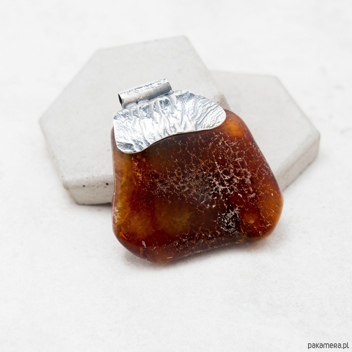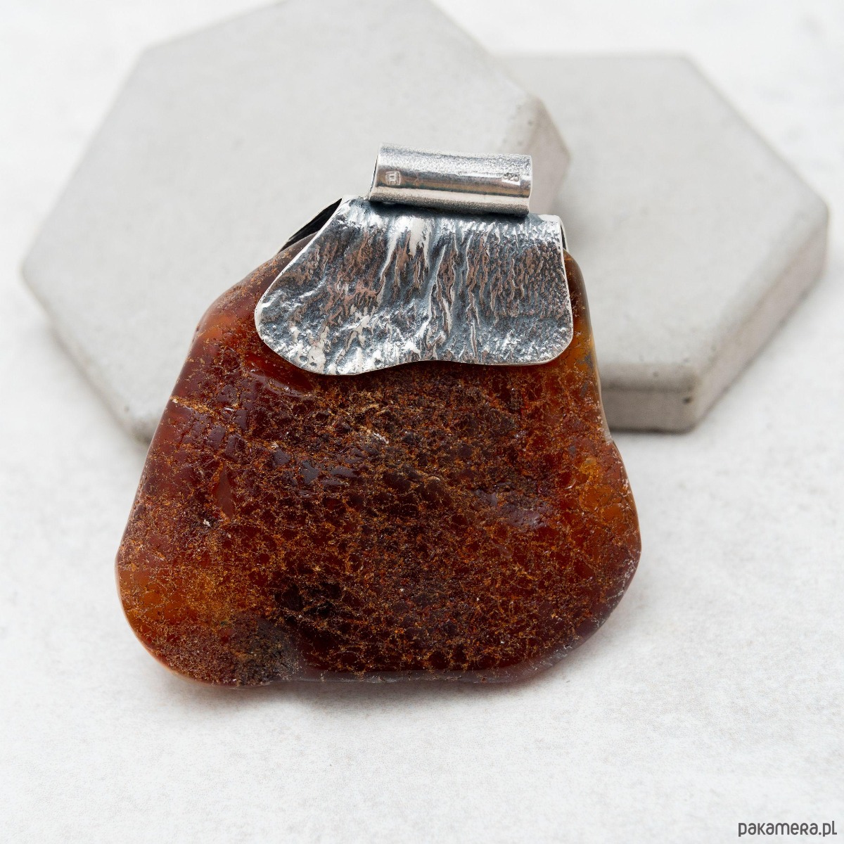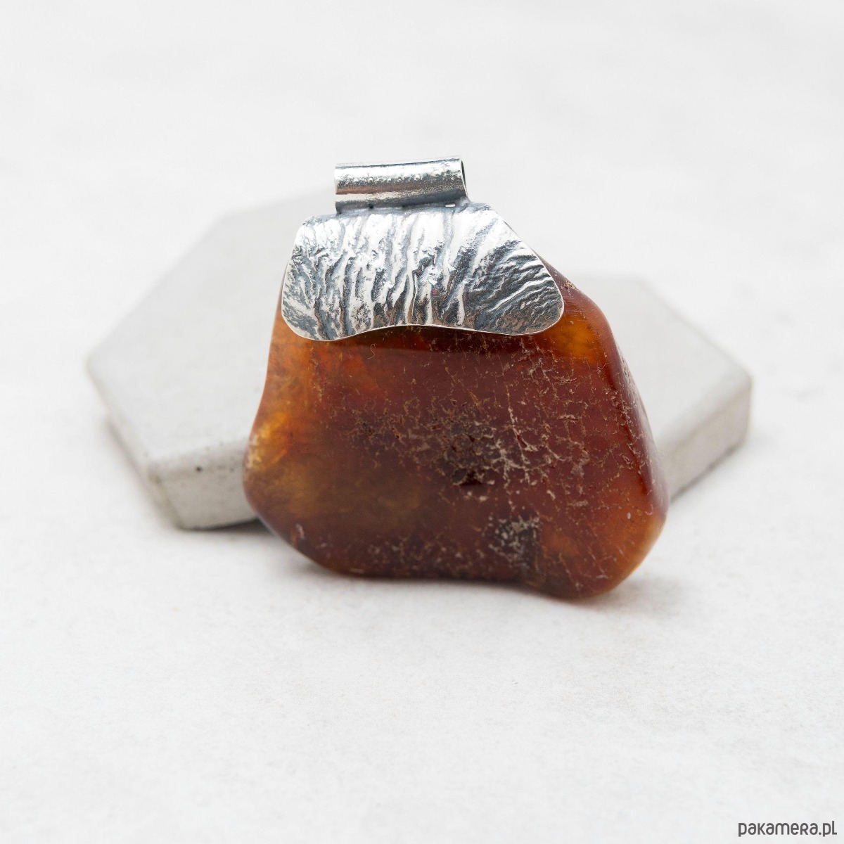 Surowy naszyjnik z bursztynu i srebra - Wisior bursztynowy - Zawieszka bursztyn