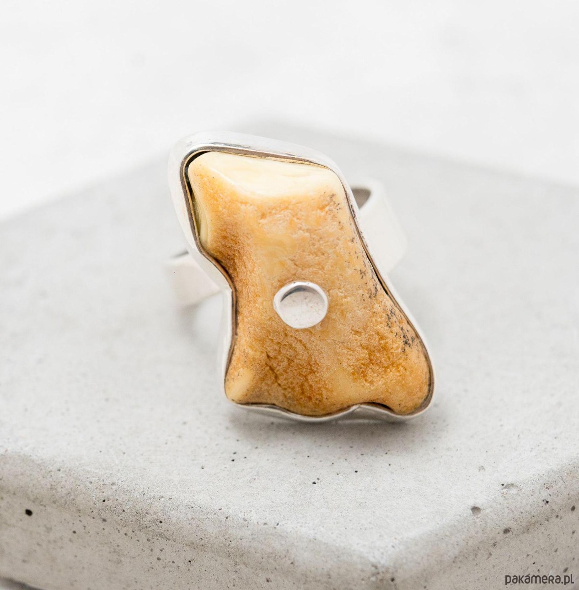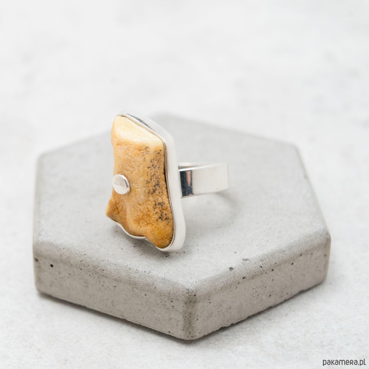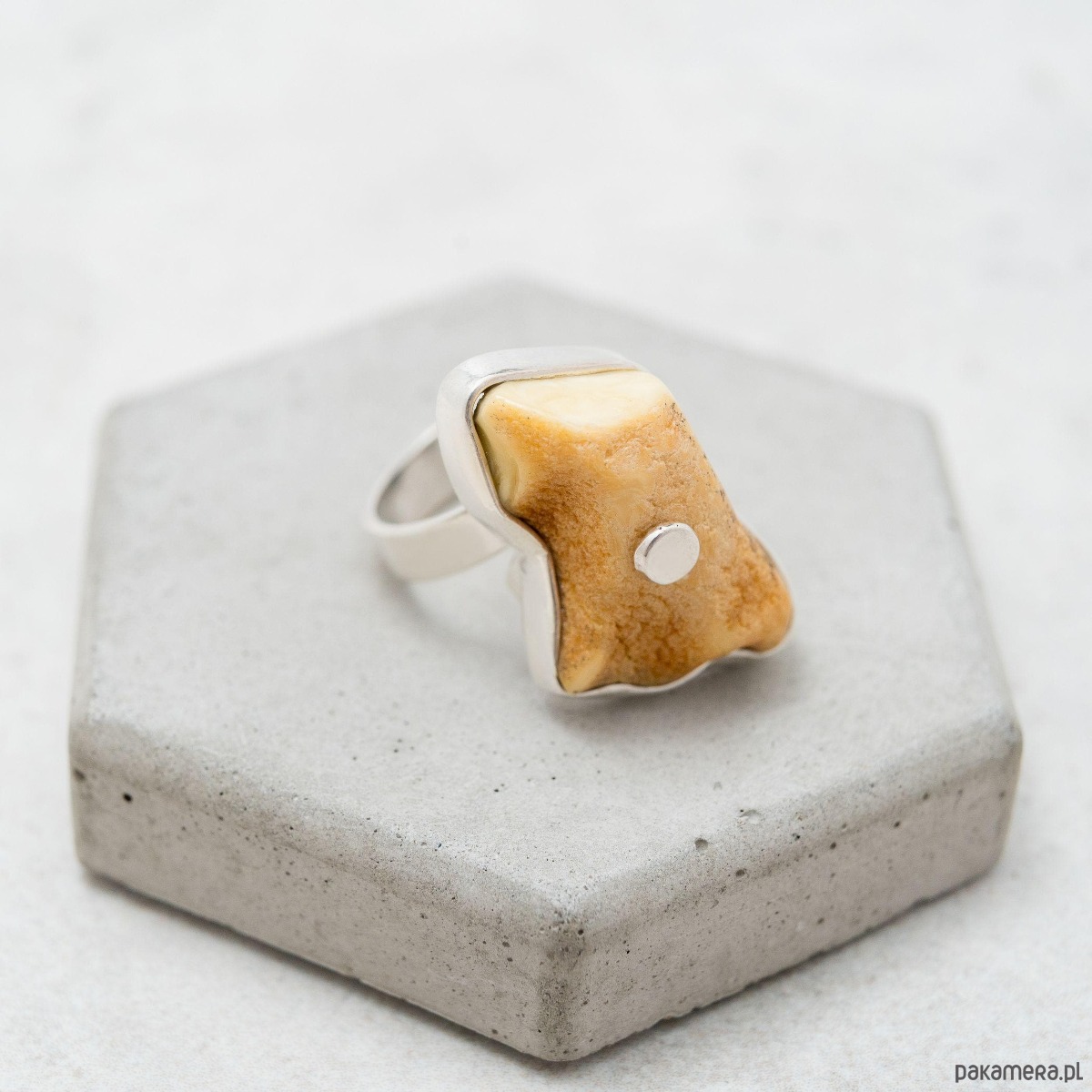 Surowy pierścionek z bursztynem i srebrem, Pierścionek bursztynowy