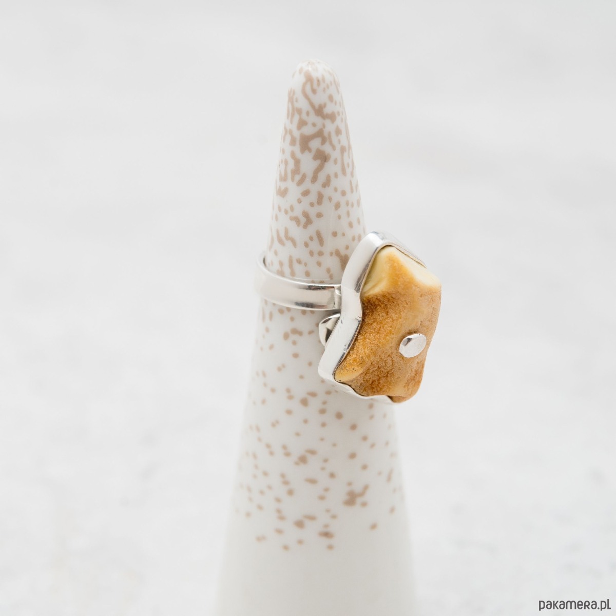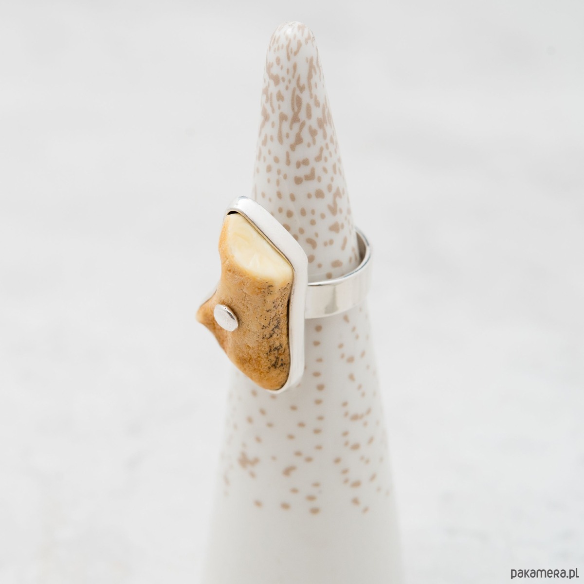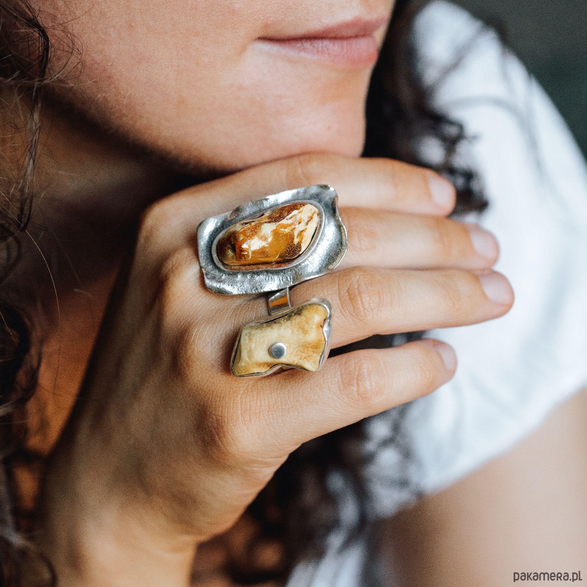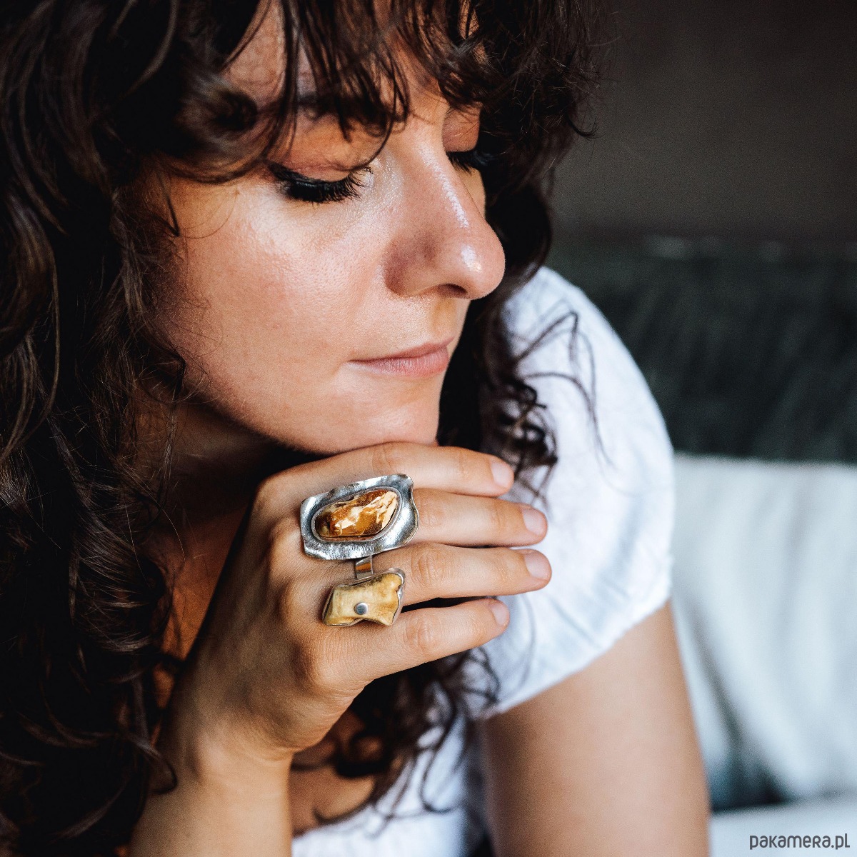 Surowy pierścionek z bursztynem i srebrem, Pierścionek bursztynowy