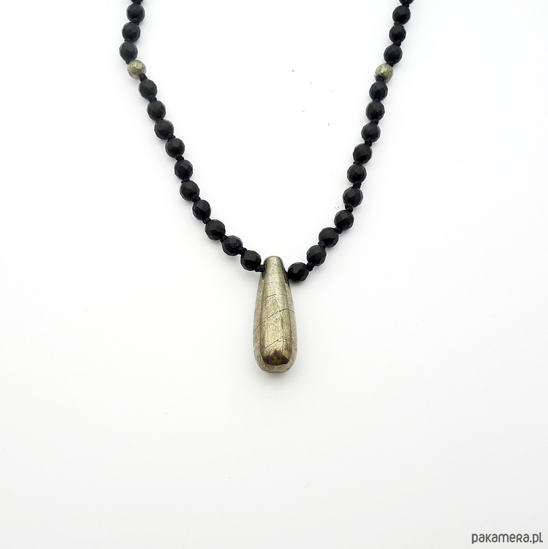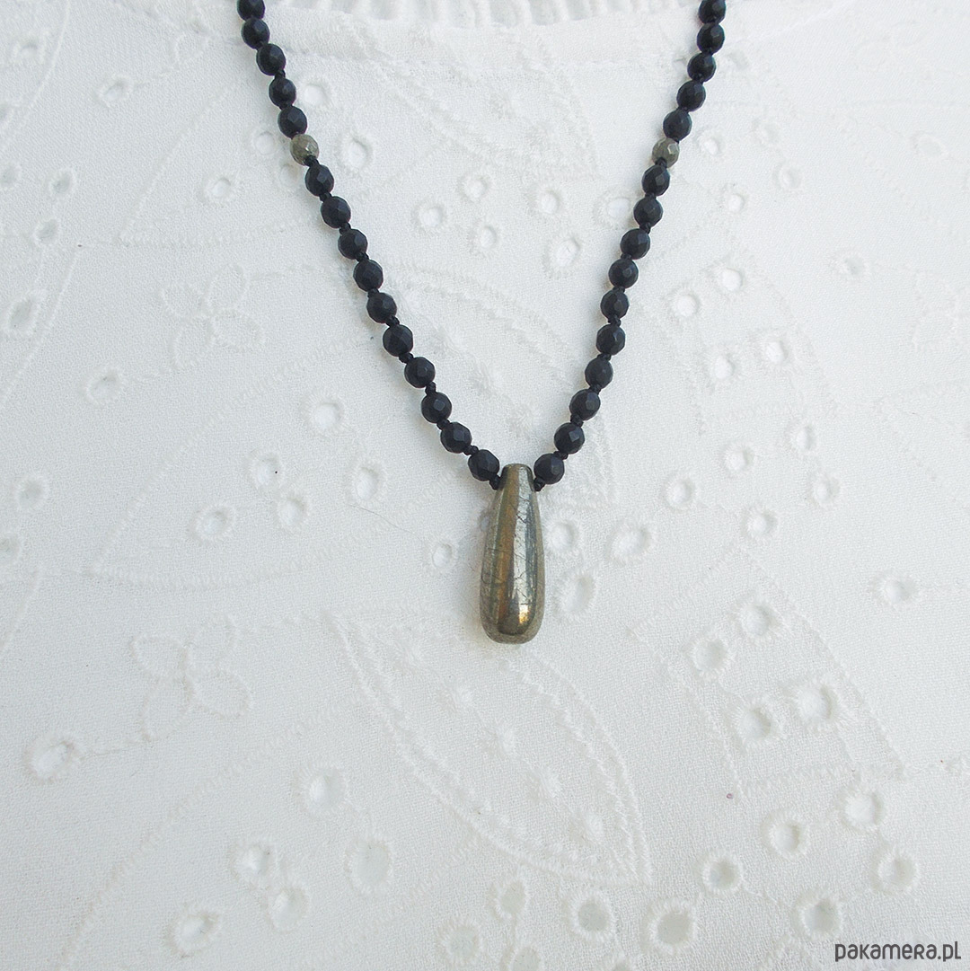 Supełkowany naszyjnik z zawieszką z surowego pirytu w kształcie kropli