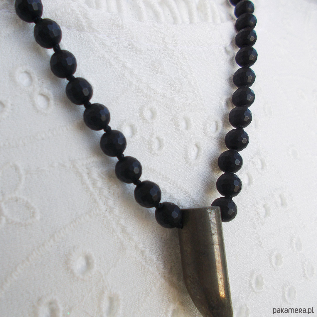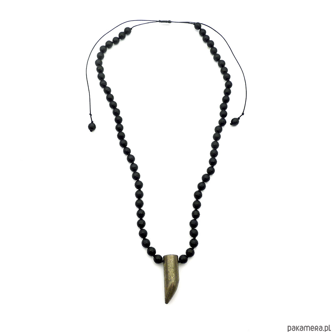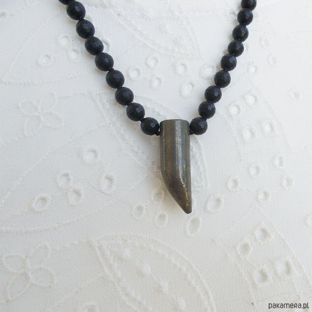 Supełkowany naszyjnik z zawieszką z surowego pirytu w kształcie kła