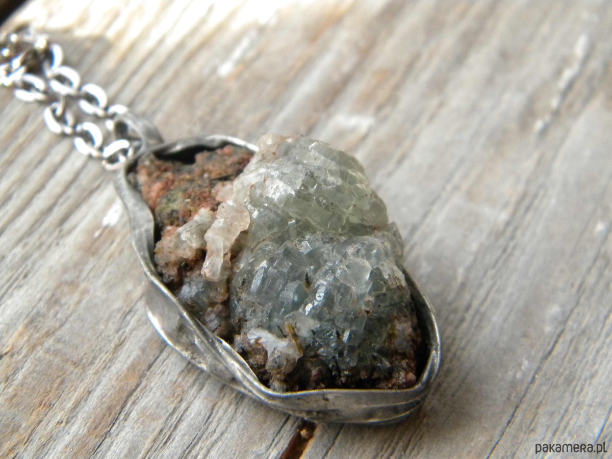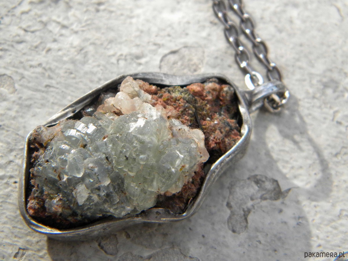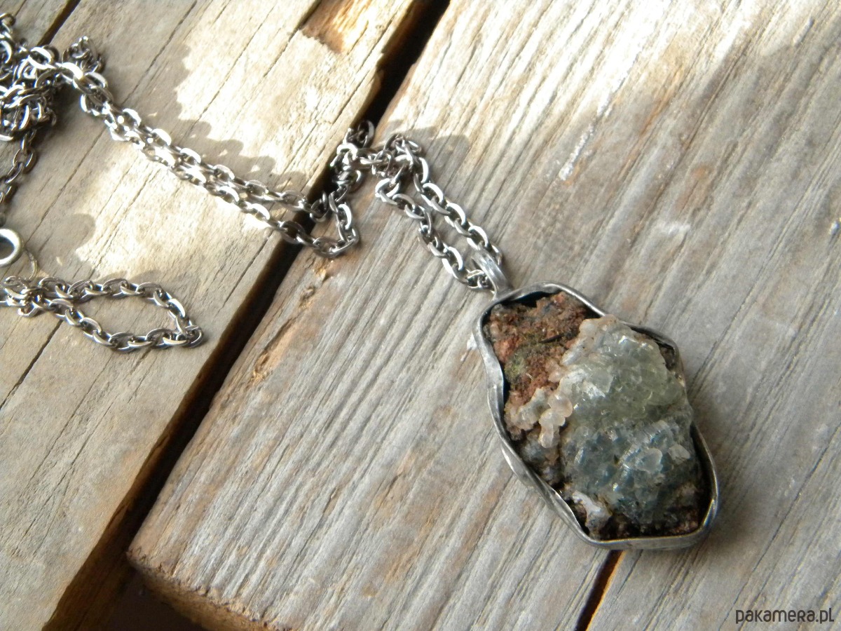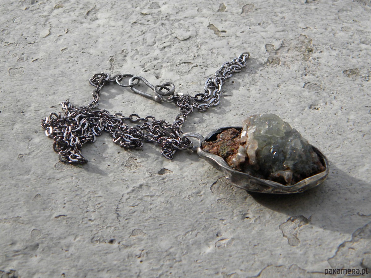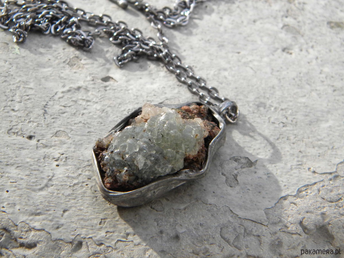 surowy prehnit w skale macierzystej oprawiony w ocynowaną miedz.