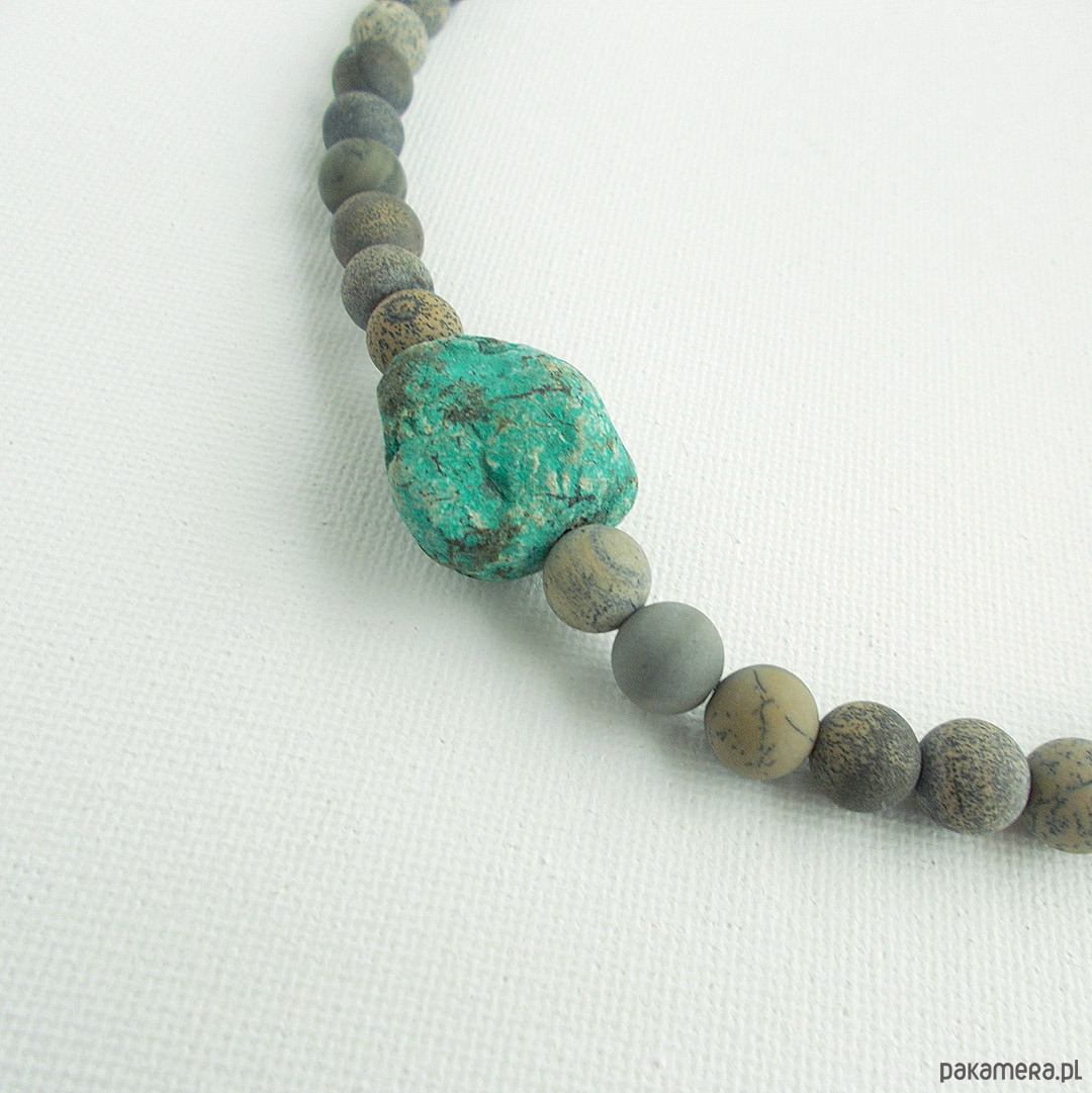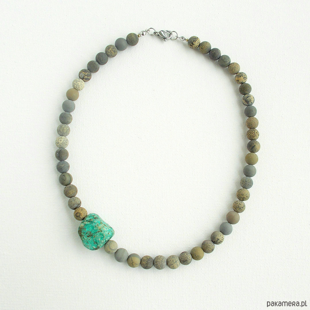 Surowy Turkus i antyczny Jaspis Naszyjnik z detalem