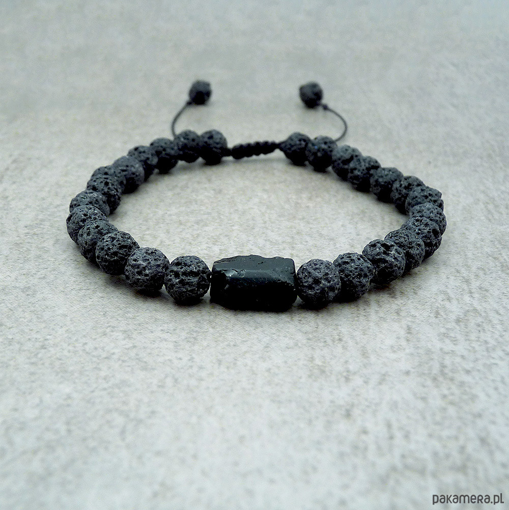 Bransoletka z czarnych kamieni z regulowanym obwodem