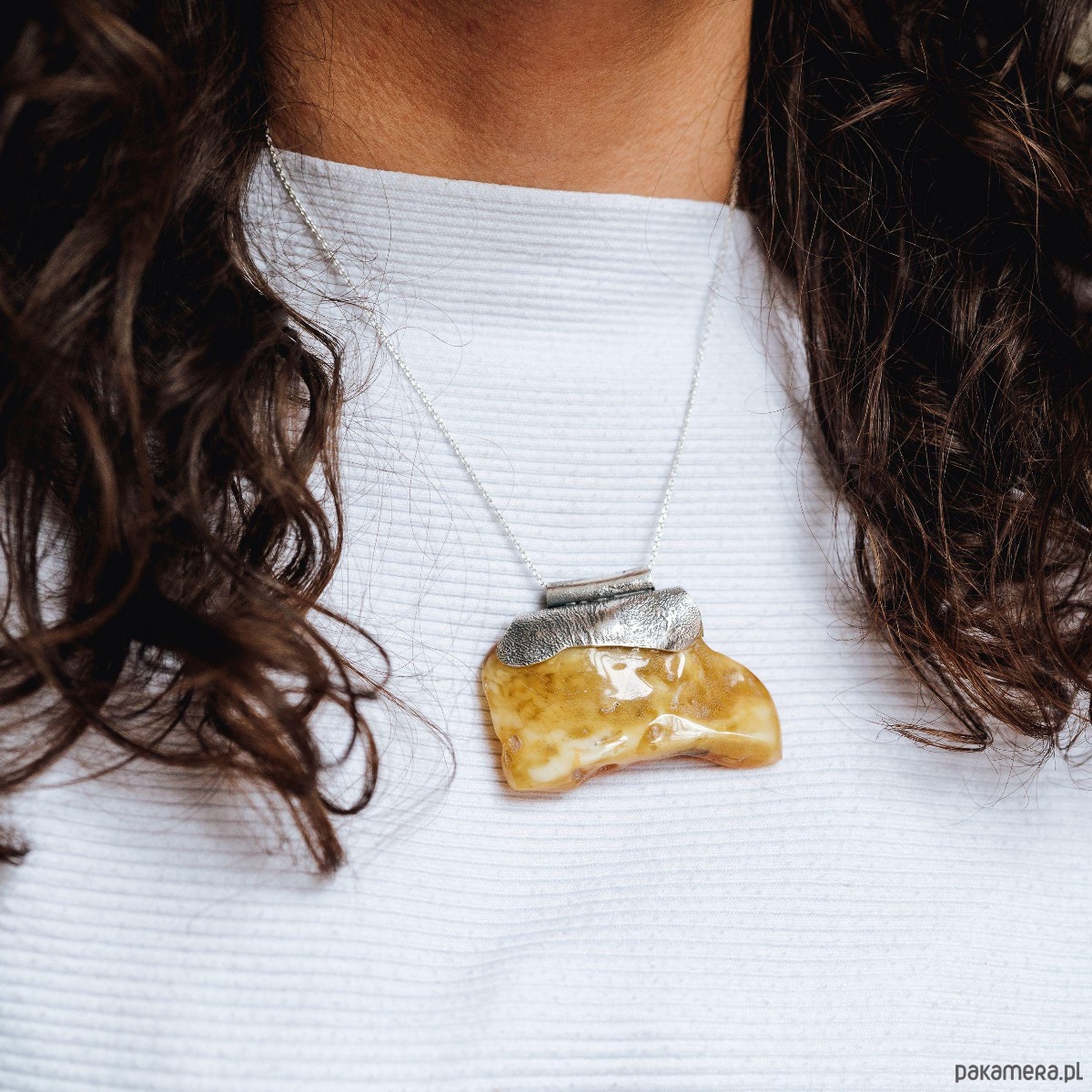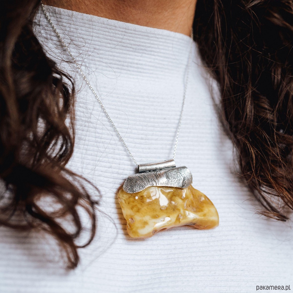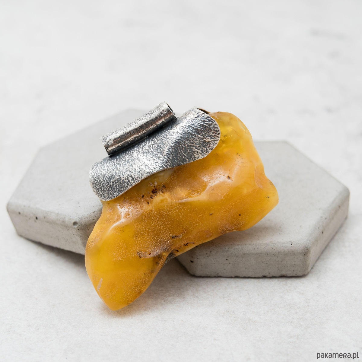 Materiały: naturalny surowy bursztyn bałtycki, srebro próby 925