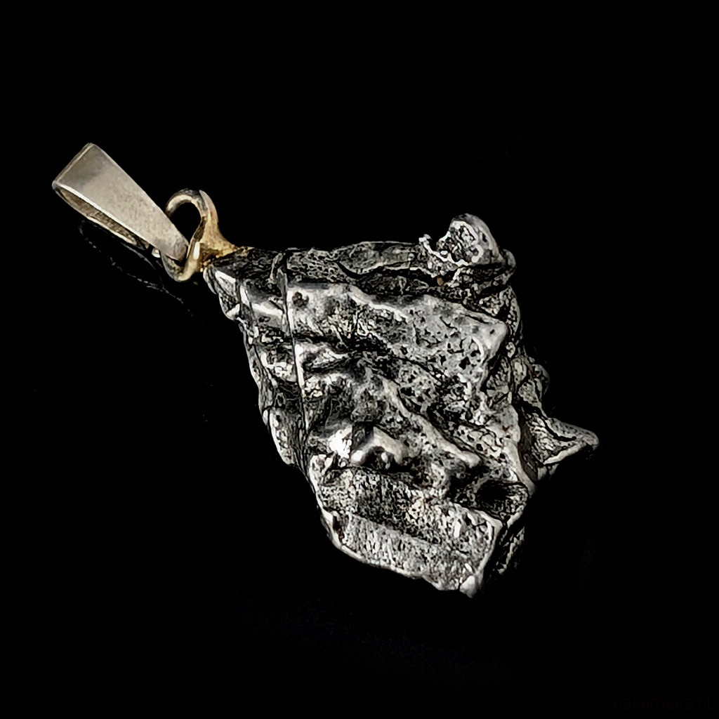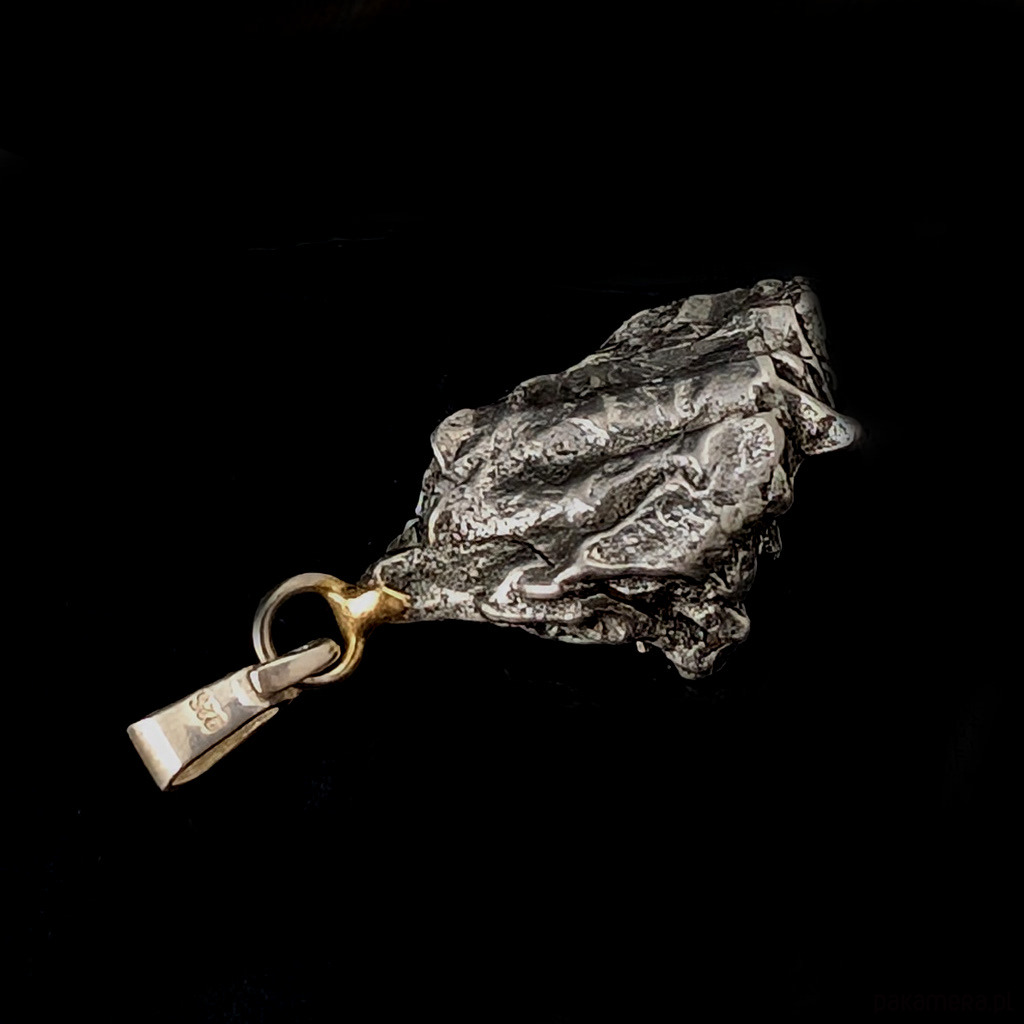Wisiorek z meteorytem żelaznym Campo del Cielo, który znaleziono w 1576 roku w Argentynie. Krawatka srebro 925 Uniwersalny, dla niego lub dla niej. Wymiary 23 x 15 mm. Długość max 31 mm. Waga wisiora 8 g. Do meteorytu dołączona zostanie metryka z datą, miejscem spadku i wagą. Wisiorek zostanie zapakowany w ozdobne pudełeczko.