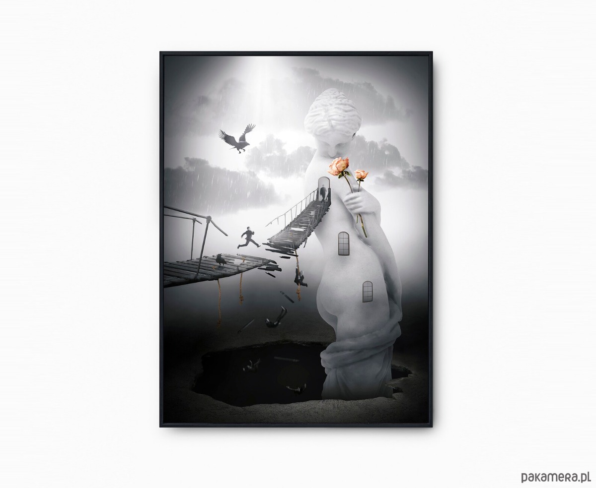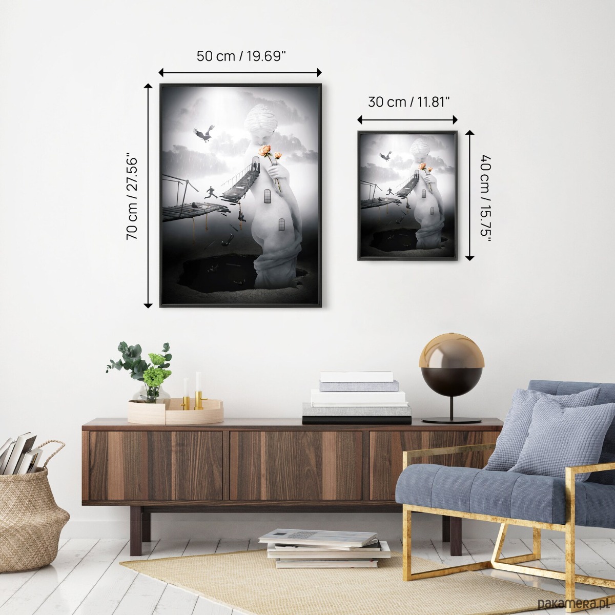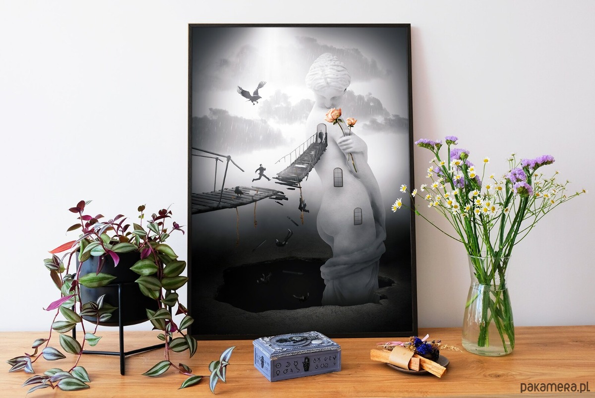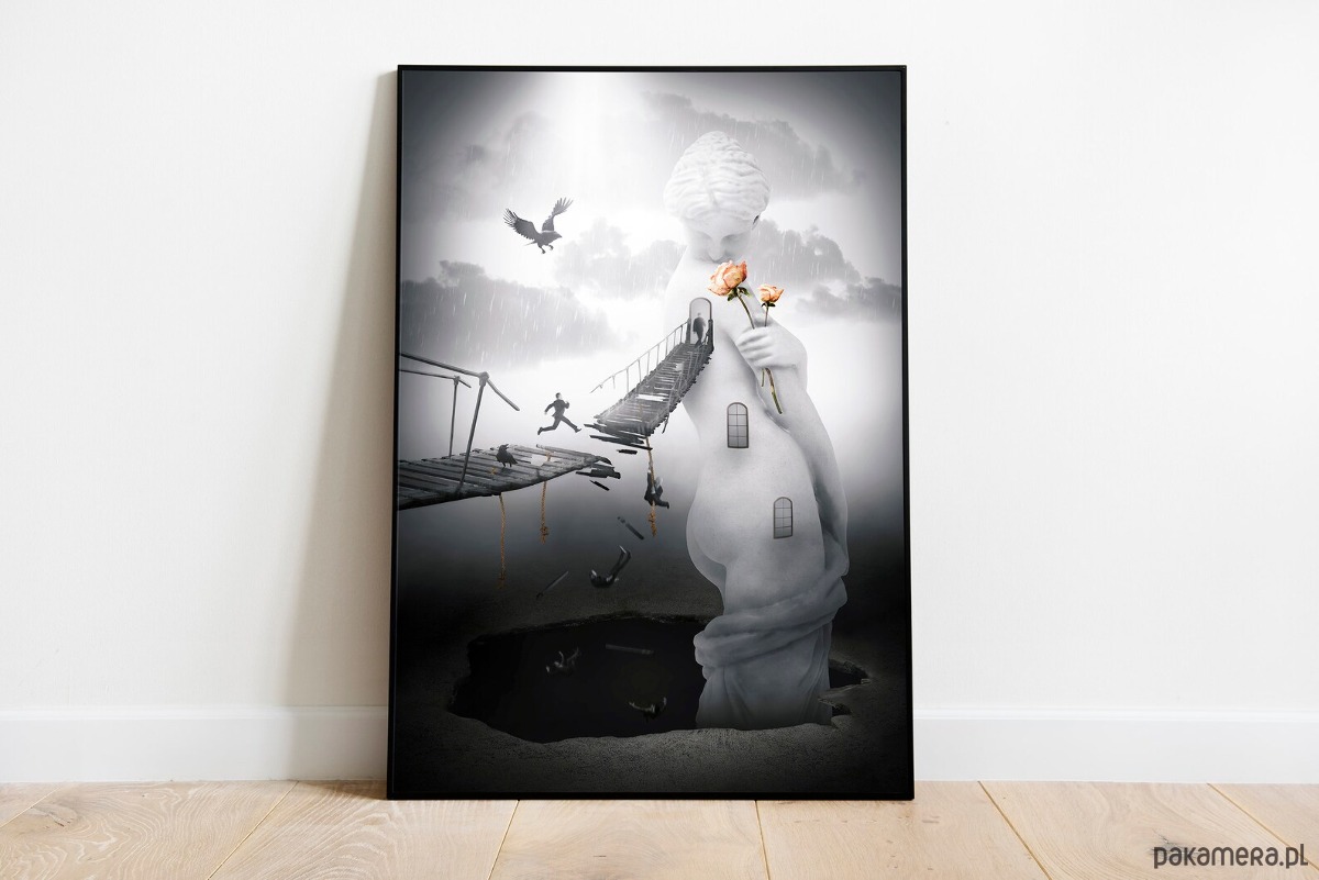 Przekształć swoje wnętrze dzięki urzekającemu kolażowi "Falling in Love". Tworzy zachwycający punkt centralny w każdym pomieszczeniu. Wykonany z dbałością o każdy detal, zaprasza do odkrywania świata, w którym króluje metafora i dwuznaczność. Lubię zostawiać interpretację każdemu z osobna, bo wiem, że każdy zobaczy w tym plakacie co innego.