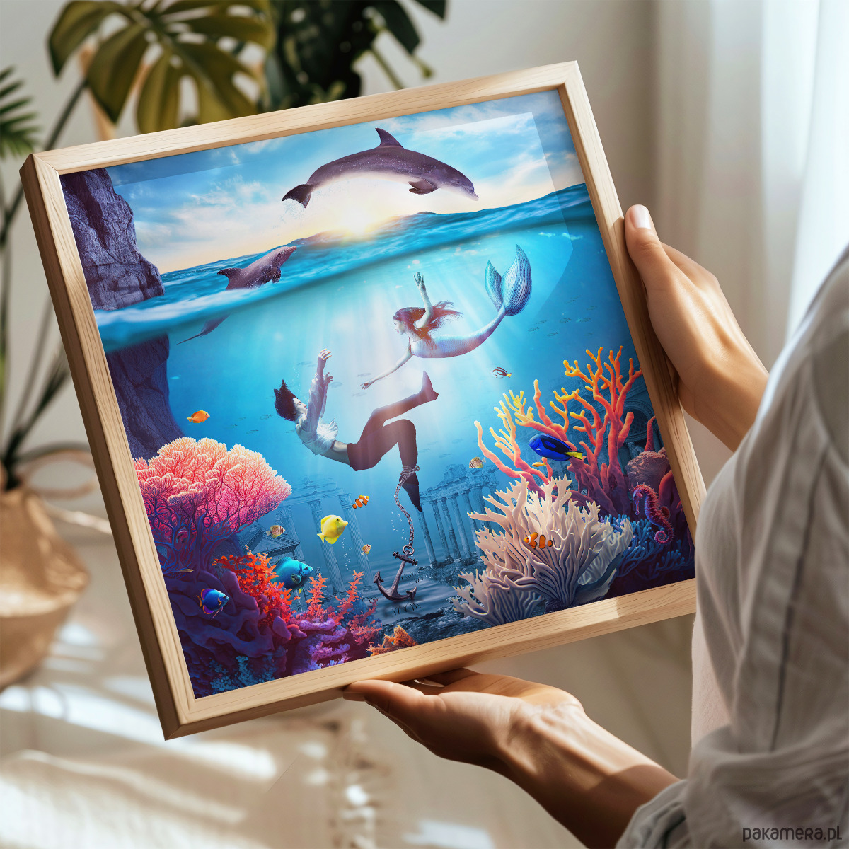 Ożyw swoje wnętrze z plakatem "Save Me" autorstwa Oli Radwan. To surrealistyczny kolaż, który łączy elementy fantazji, natury i symboliki. Jego wyjątkowy styl sprawia, że staje się centralnym punktem każdego pomieszczenia, dodając mu charakteru i głębi.