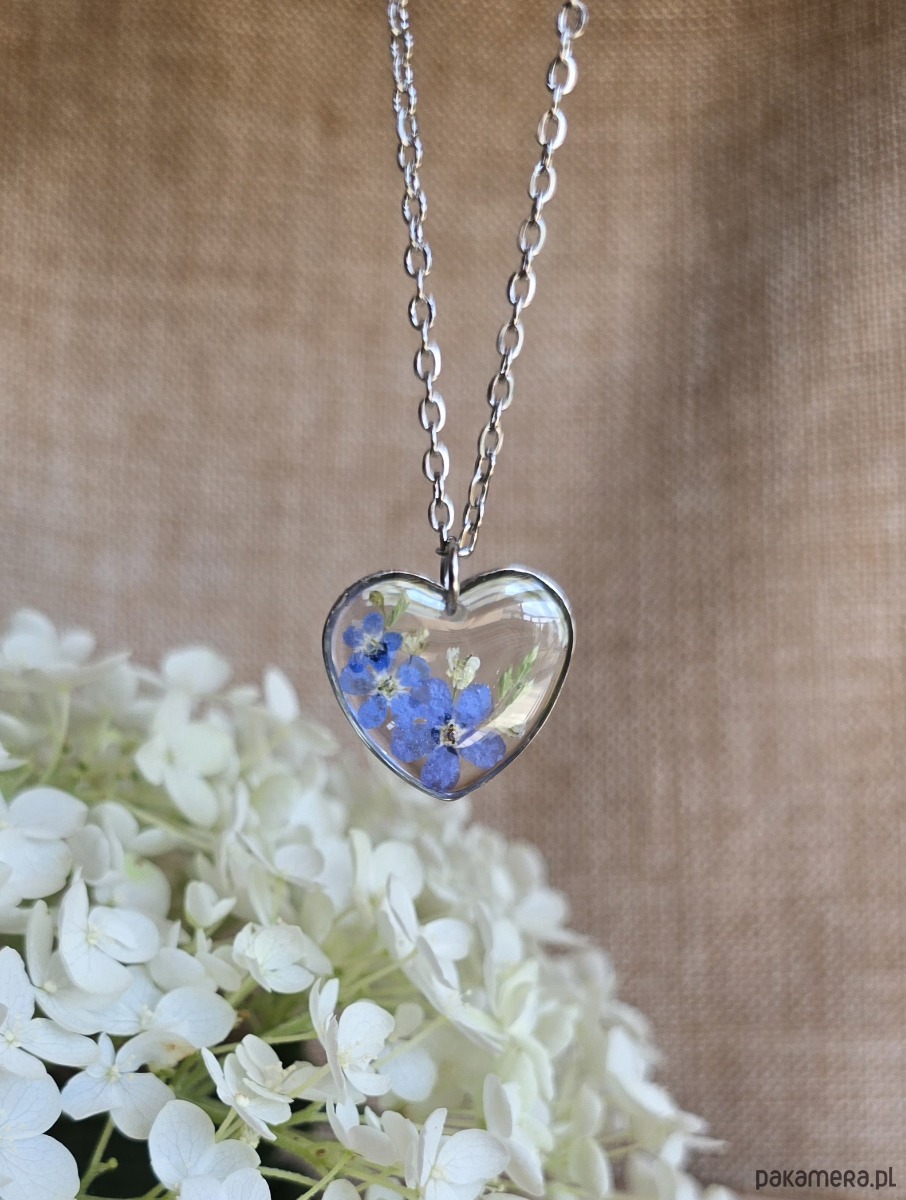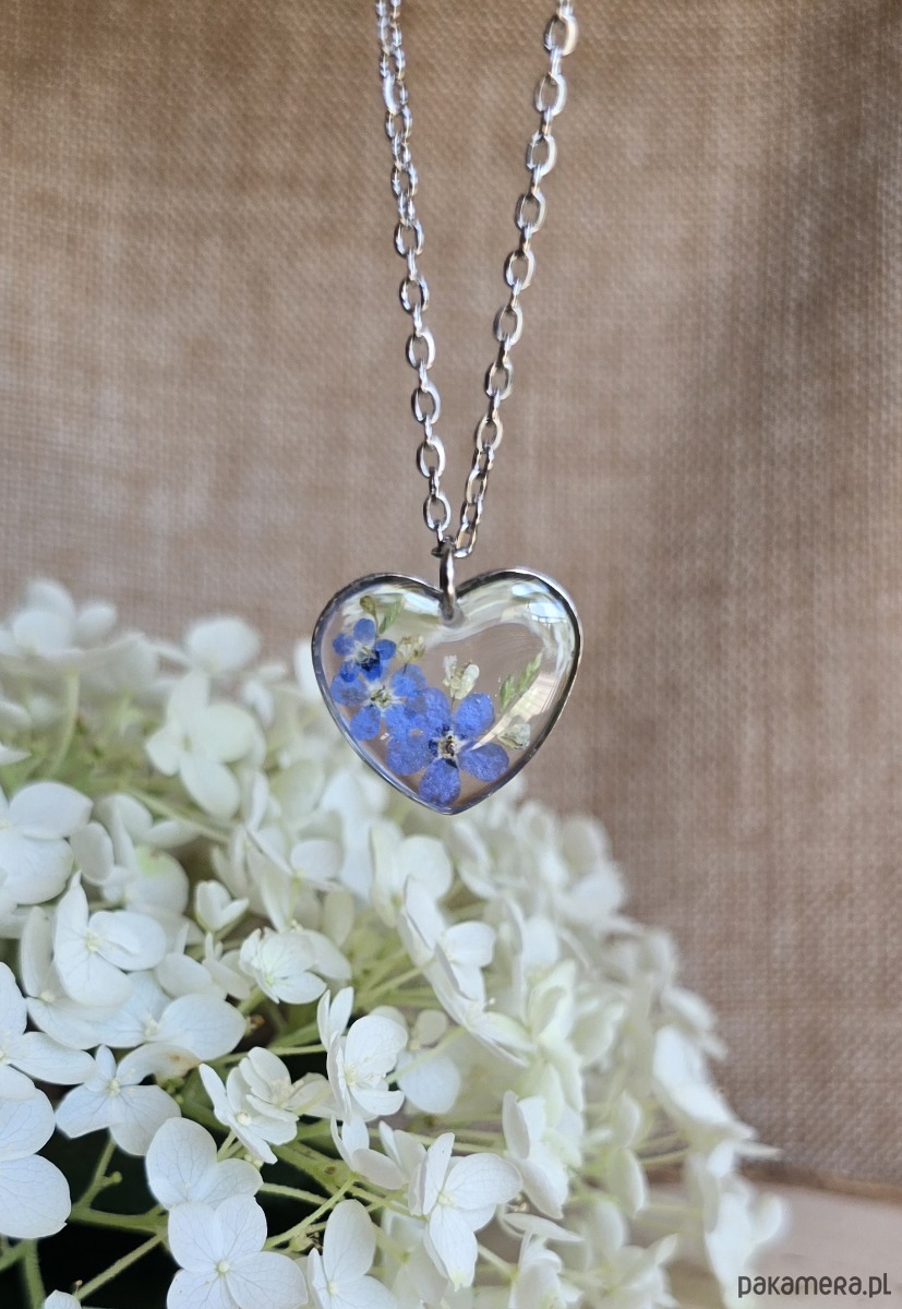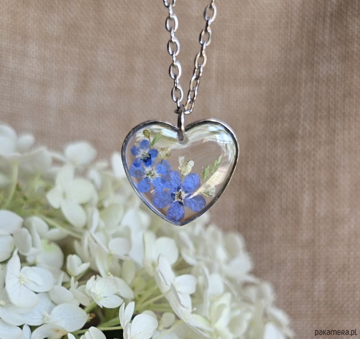 Oferuję Państwu unikalną biżuterię. Zawieszka jest wykonana z suszonych kwiatów i żywicy epoksydowej. Biżuteria jest wspaniałym i oryginalnym prezentem na lata.