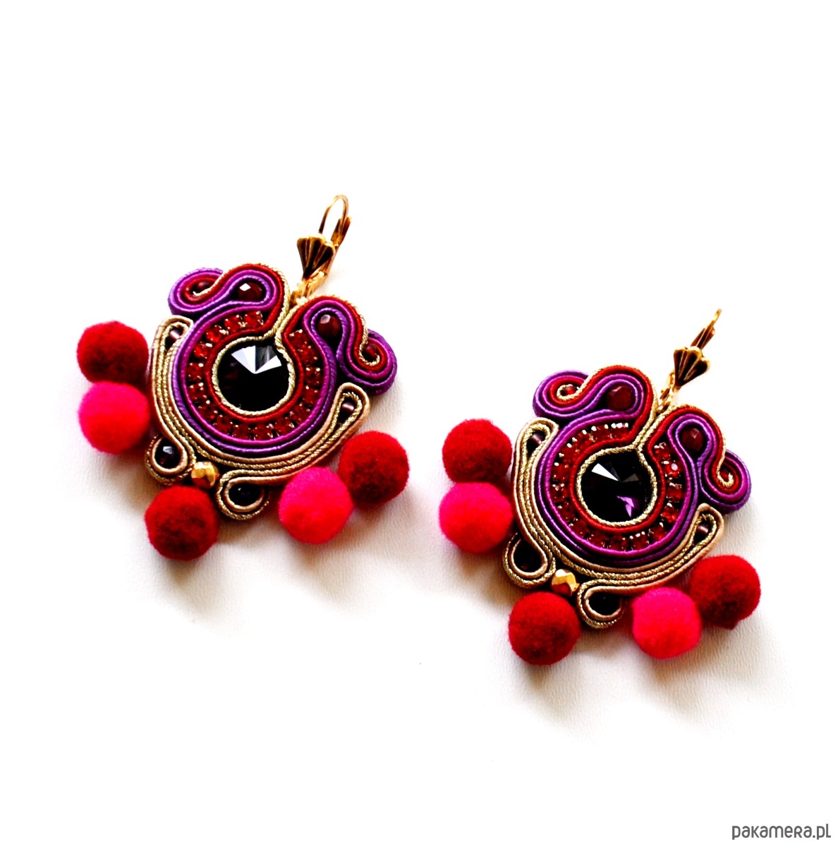 Oryginalne eleganckie kolczyki z sutaszu - w turkusie, indygo, czerwieni i odrobiną złota. Długość ok. 4,5 cm. Zawieszone na antyalergicznych biglach. Impregnowane. Kolczyki wykonywane są na indywidualne zamówienie.