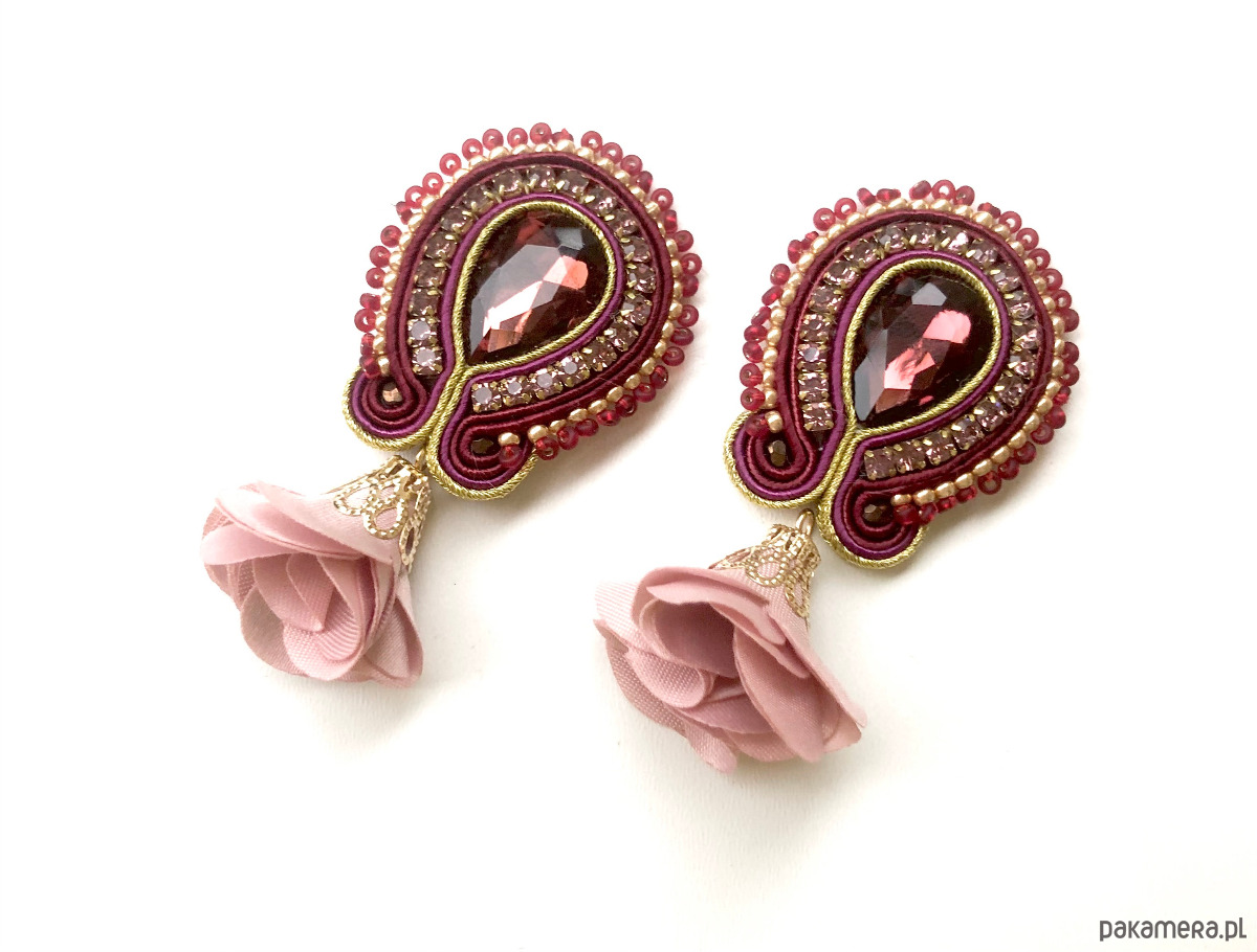 Oryginalne eleganckie kolczyki z sutaszu - w odcieniach bordo i burgundu oraz odrobiny złota. Długość ok.6 cm. Zawieszone na antyalergicznych biglach. Impregnowane. Kolczyki wykonywane są na indywidualne zamówienie.Proszę o przemyślane zakupy