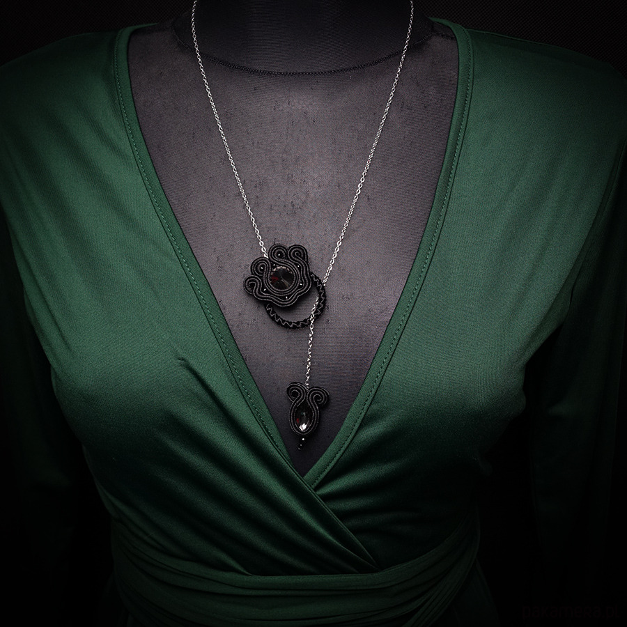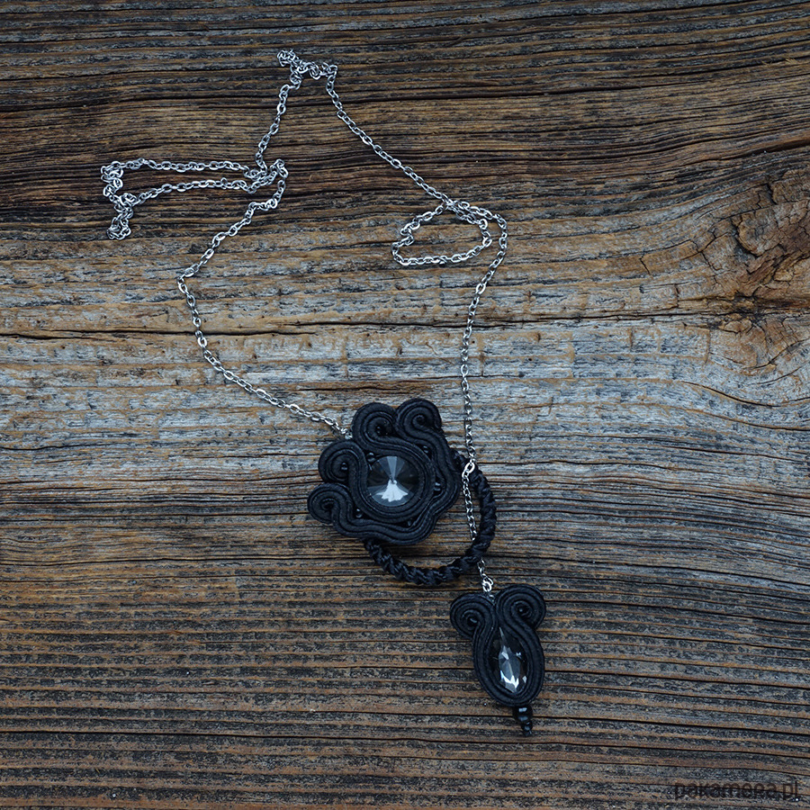 Naszyjnik wykonany metodą haftu soutache w bardzo oszczędnej, minimalistycznej formie. To propozycja dla osób, które cenią subtelną biżuterię z wyraźnym akcentem i lubią nowoczesne interpretacje sutaszu.