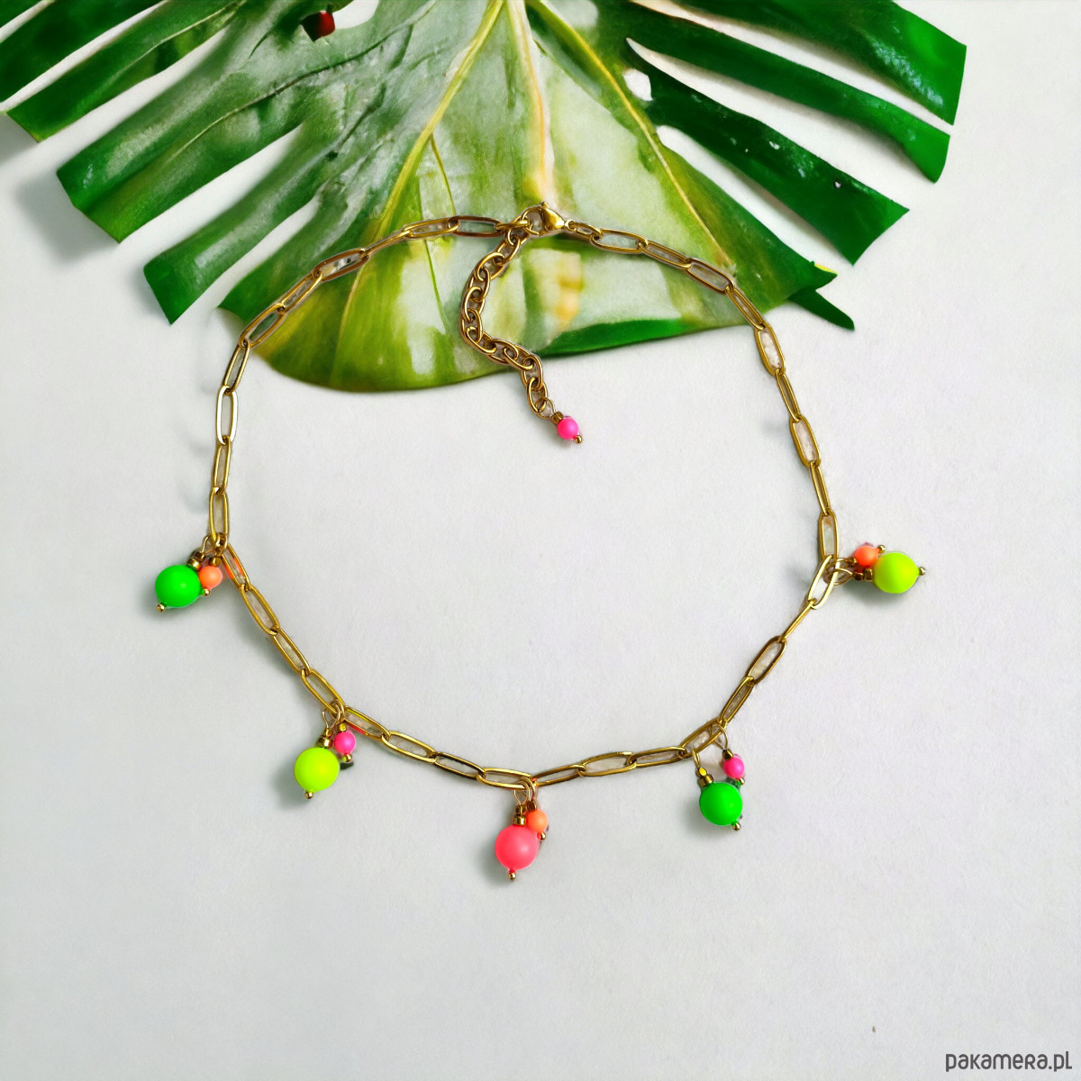 Uroczy naszyjnik typu choker z neonowymi perełkami marki Swarovski w rozmiarze 8 i 4mm.