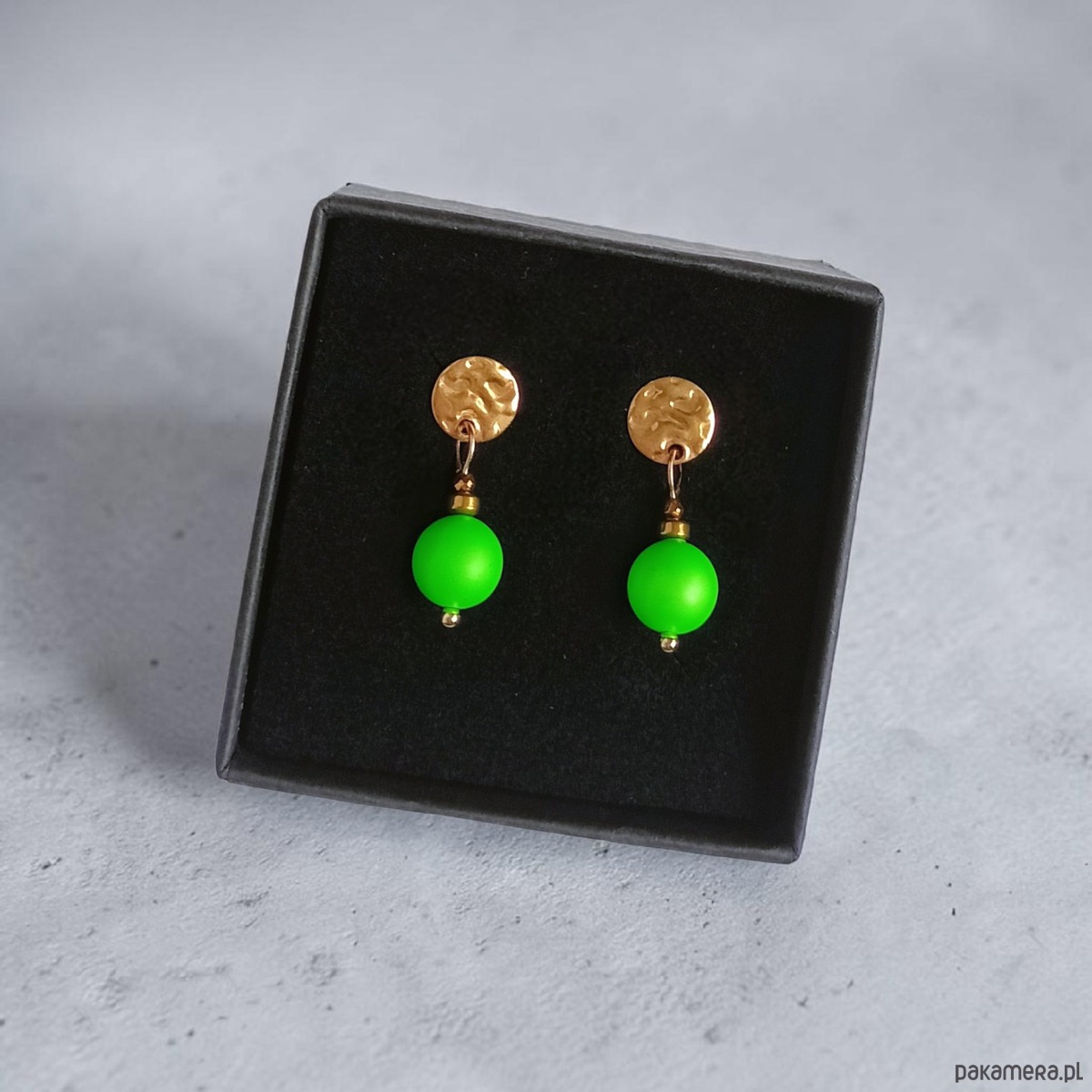 Urocze kolczyki na ozdobnych sztyftach z neonowymi perłami marki Swarovski (8mm)