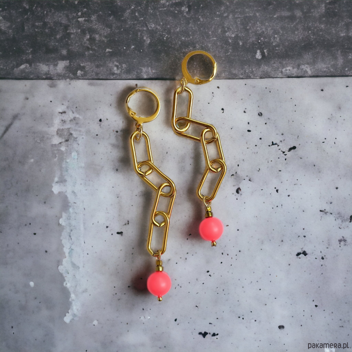 długie kolczyki z neonowymi perłami marki Swarovski (8mm)