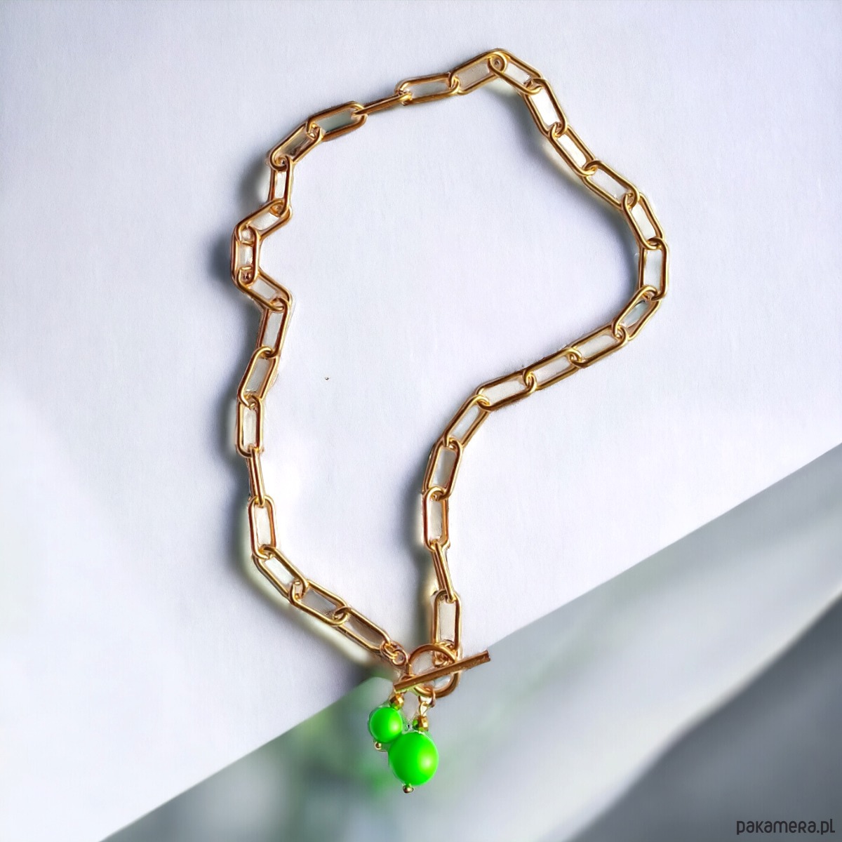 Prosty, efektowny naszyjnik z dwoma neonowymi perłami marki Swarovski (12 i 8mm)