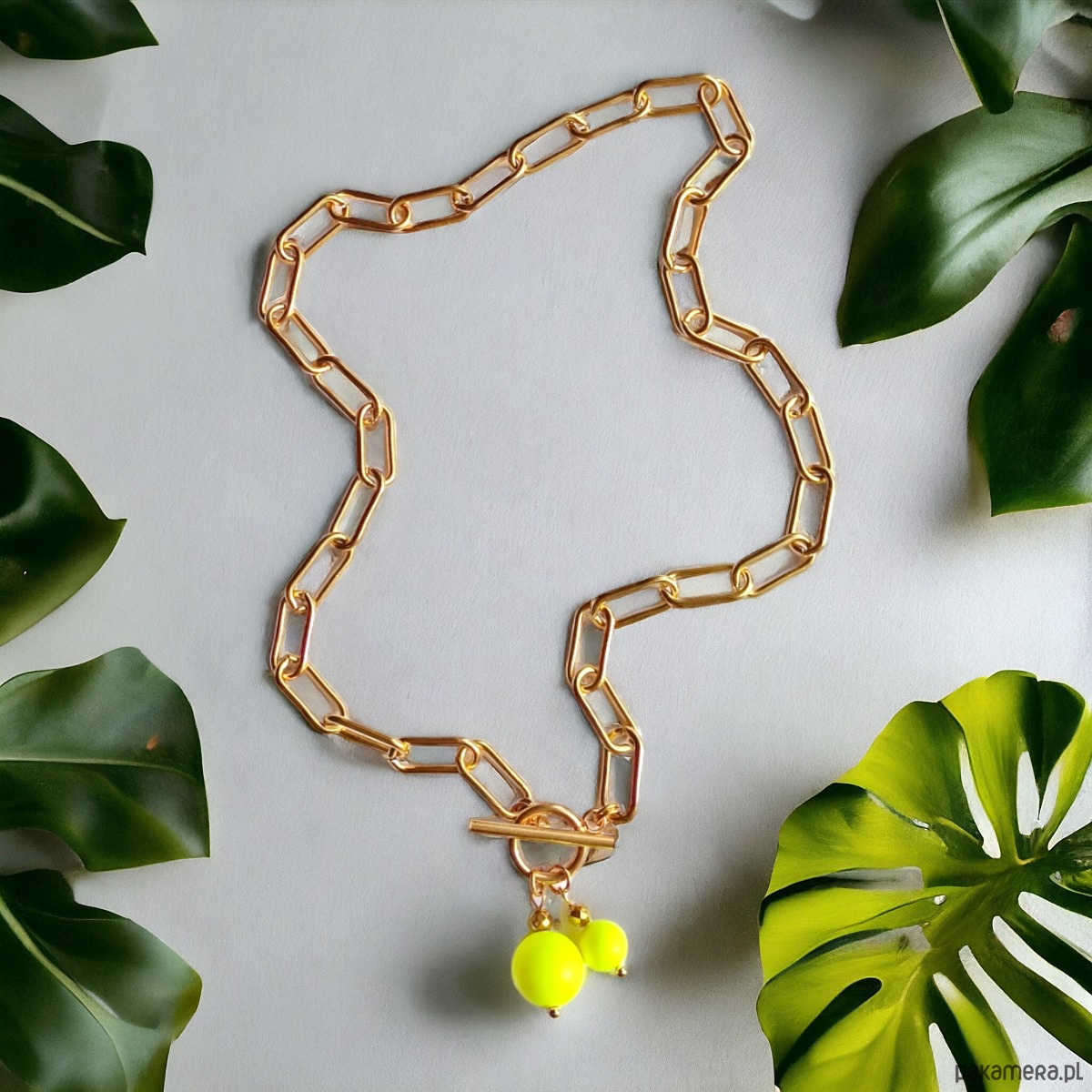 Prosty, efektowny naszyjnik z dwoma neonowymi perłami marki Swarovski (12 i 8mm)