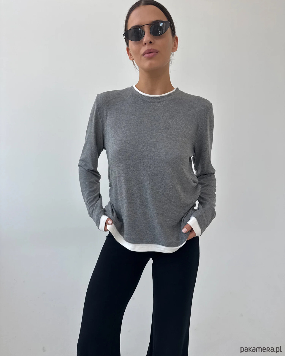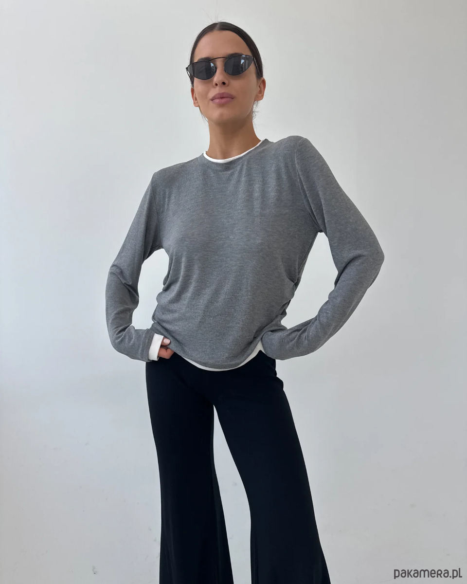 Sweater Touch w kolorze grey to lekki, miękki longsleeve o sweterkowym wykończeniu, który łączy wygodę z awangardową formą. Uszyty z wysokogatunkowej, oddychającej wiskozy, otula sylwetkę, a dzięki subtelnym detalom wyróżnia się na tle klasycznych bazowych modeli.