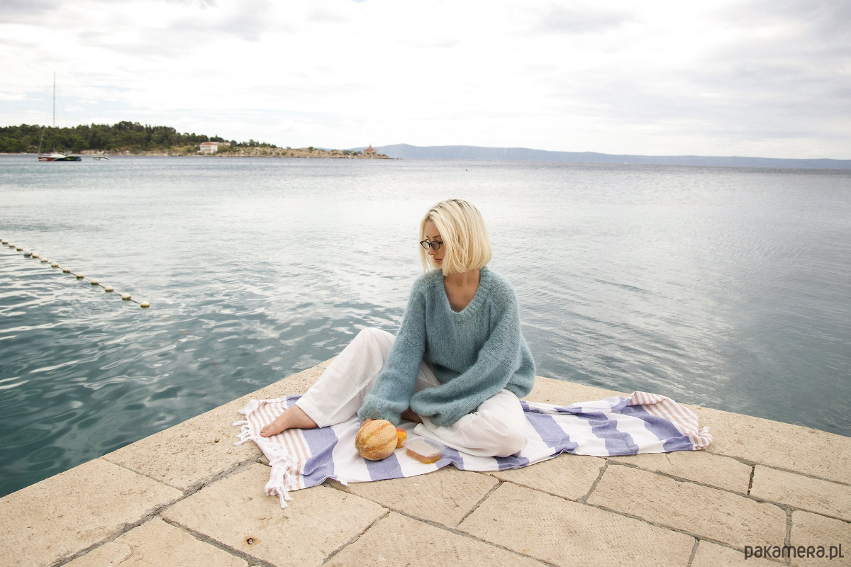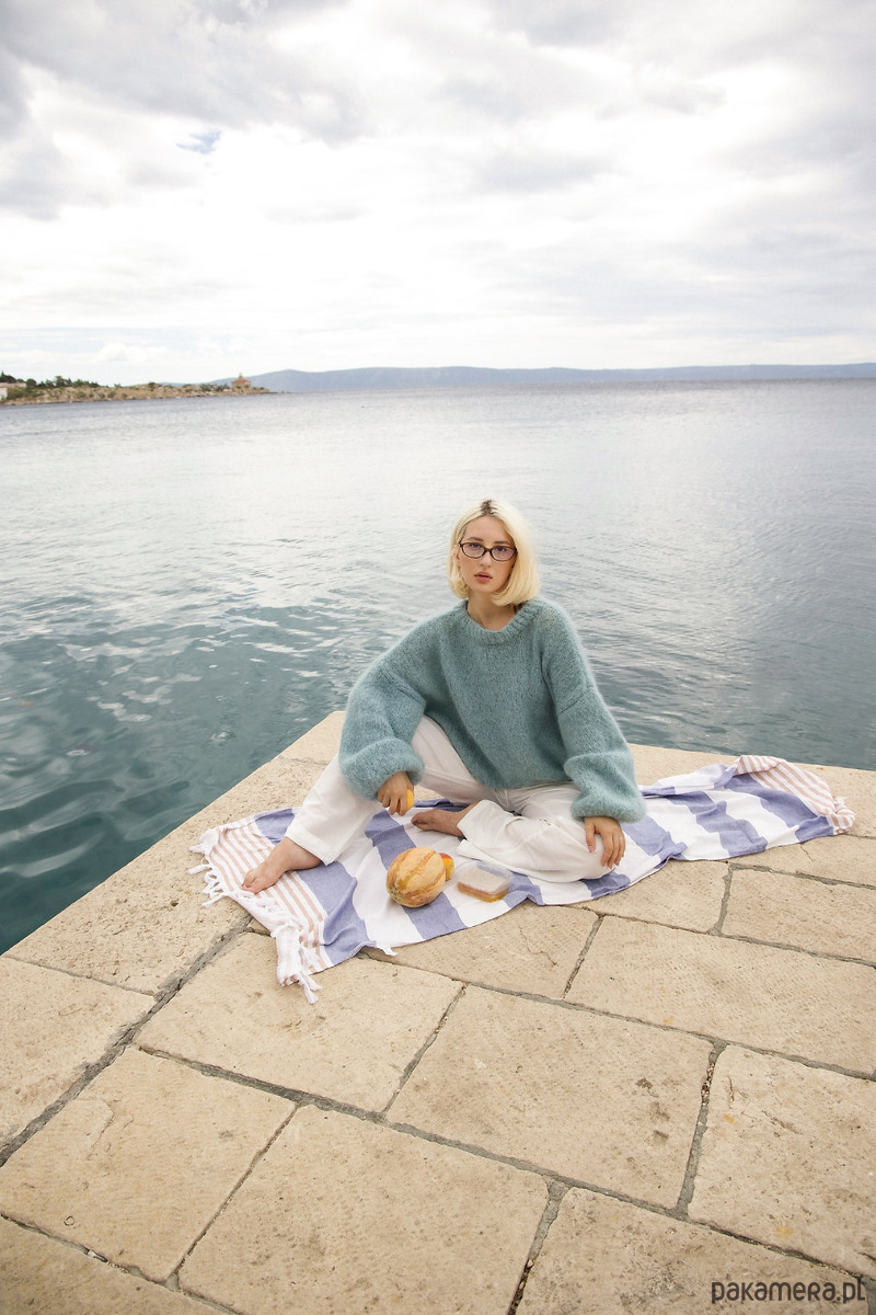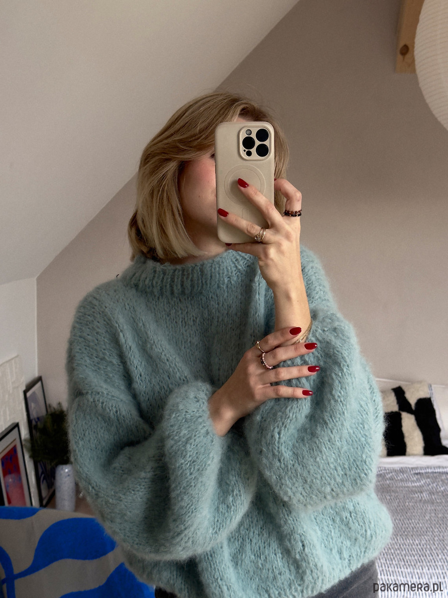 Nasz ręcznie dziergany sweter Azure to idealna propozycja na cały rok. Wykonany z najwyższej jakości włóczki merynosa i alpaki, jest niezwykle miękki i przyjemny w dotyku.