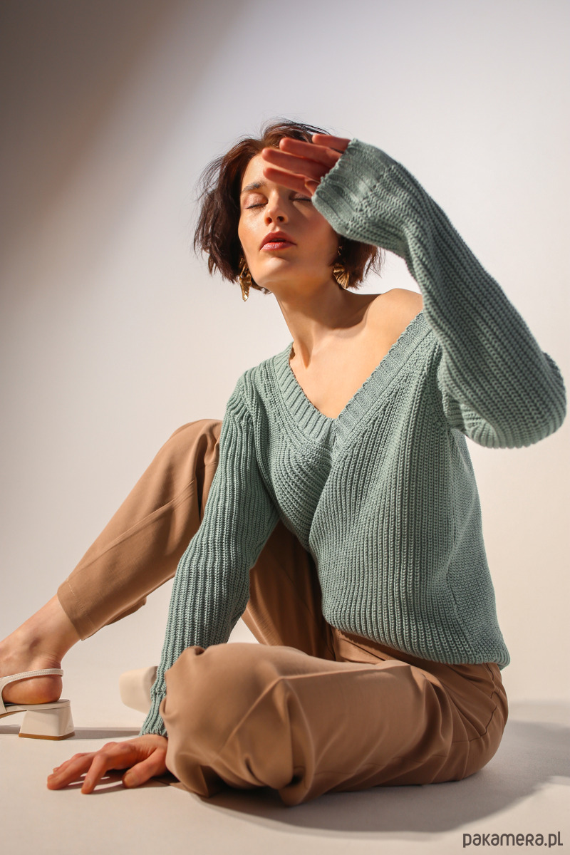 Prosty w formie, z dekoltem w szpic, wykonany ze 100% polskiej bawełny.