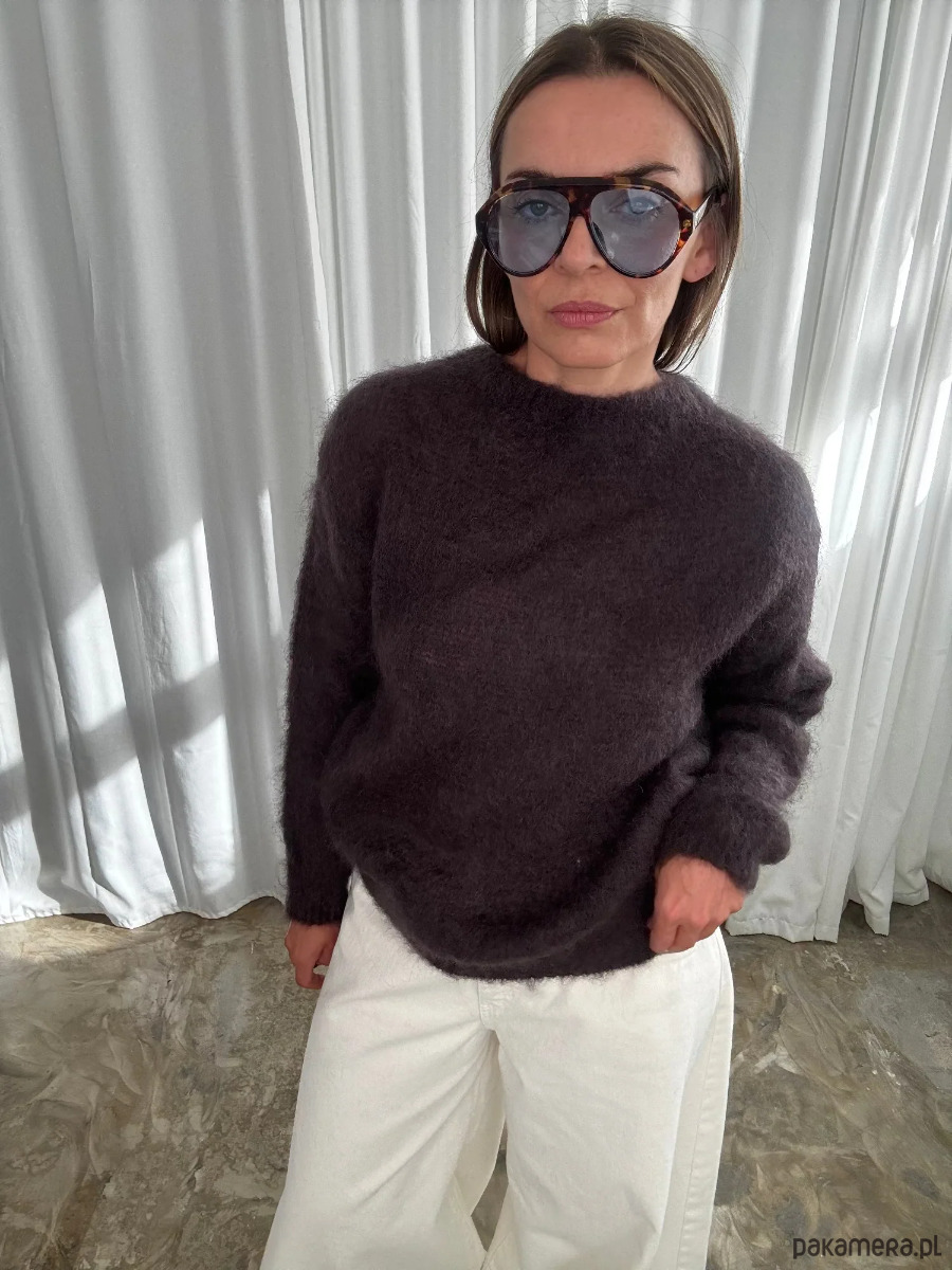 Sweter Mohair brown to kwintesencja komfortu i subtelnej elegancji. Wykonany z lekkiej, puszystej dzianiny z dodatkiem mohairu, tworzy efekt miękkiej, otulającej struktury, która nadaje stylizacji głębi i szlachetności.