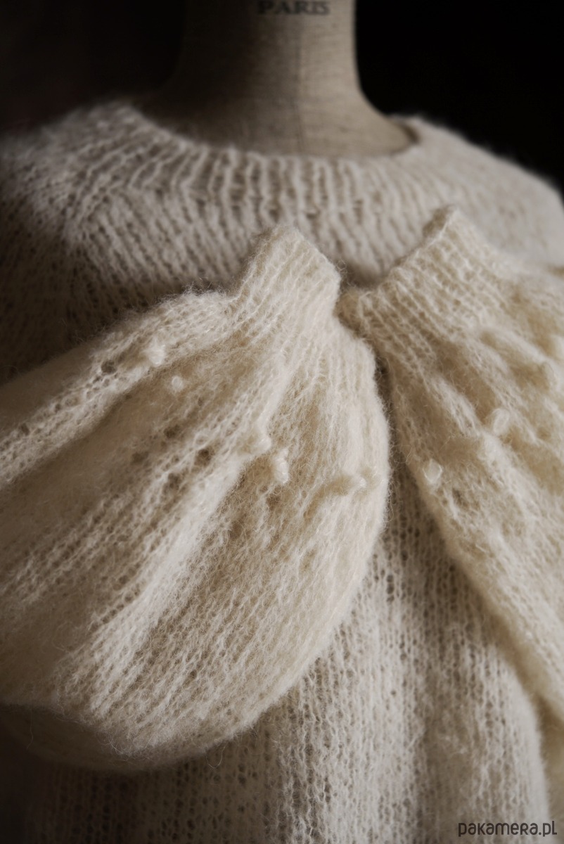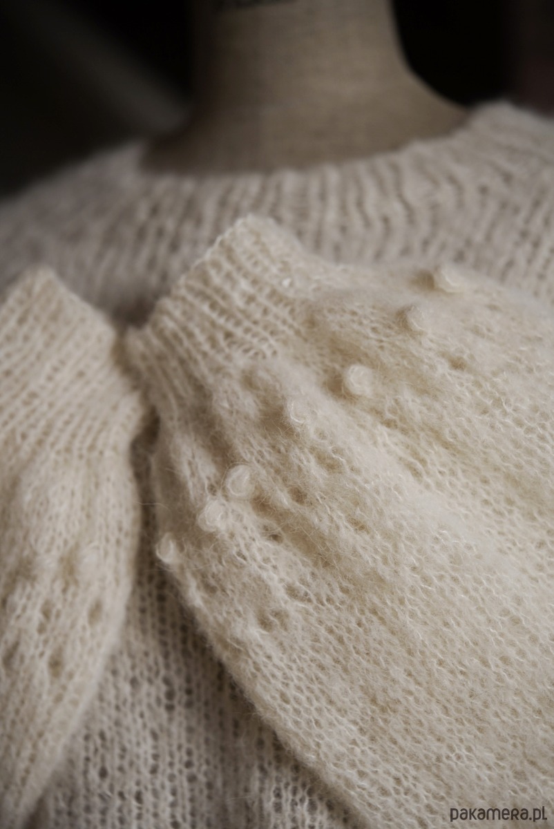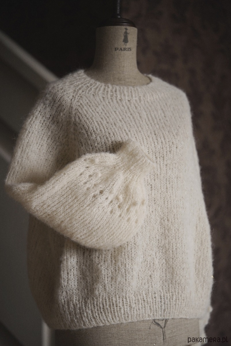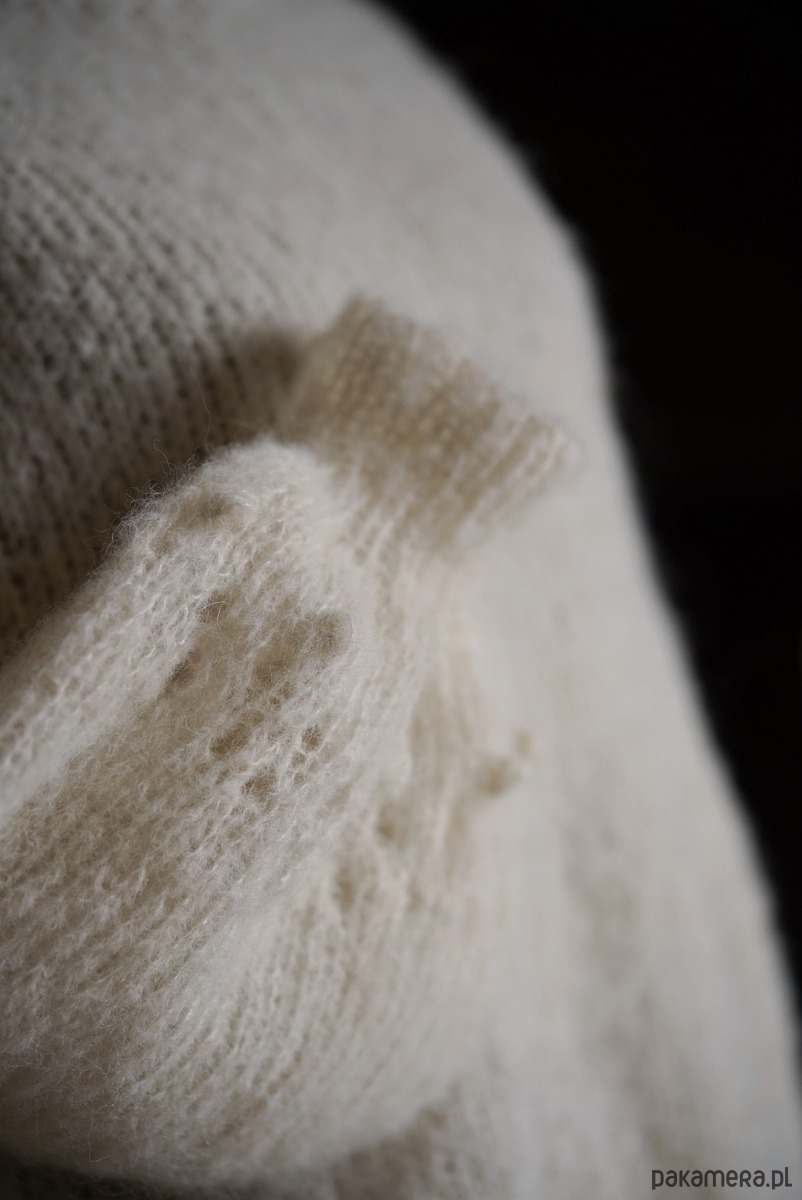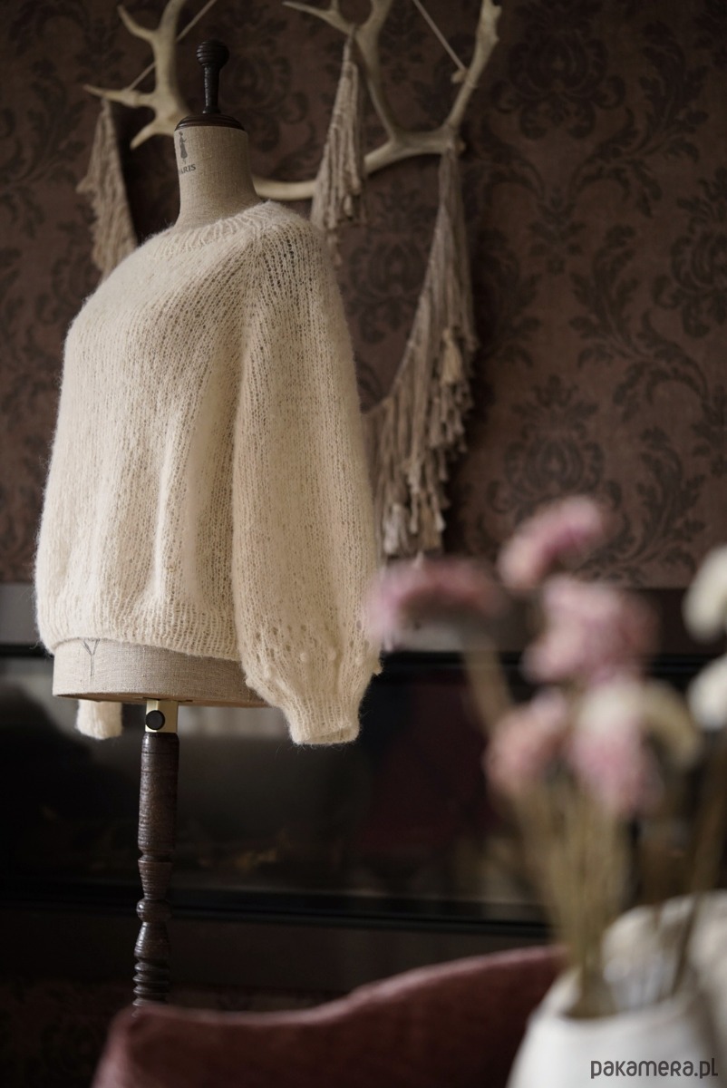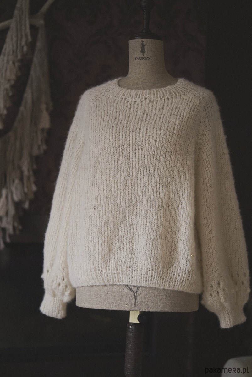 Romantyczny i nieziemsko lekki ale przy tym wytrzymały sweter w kolorze kremowym. Niewiarygodnie miękki, przytulny, nie gryzący. To dzięki duetowi włókien alpaki i jedwabiu czyli 100 procent natury i przyjemności.