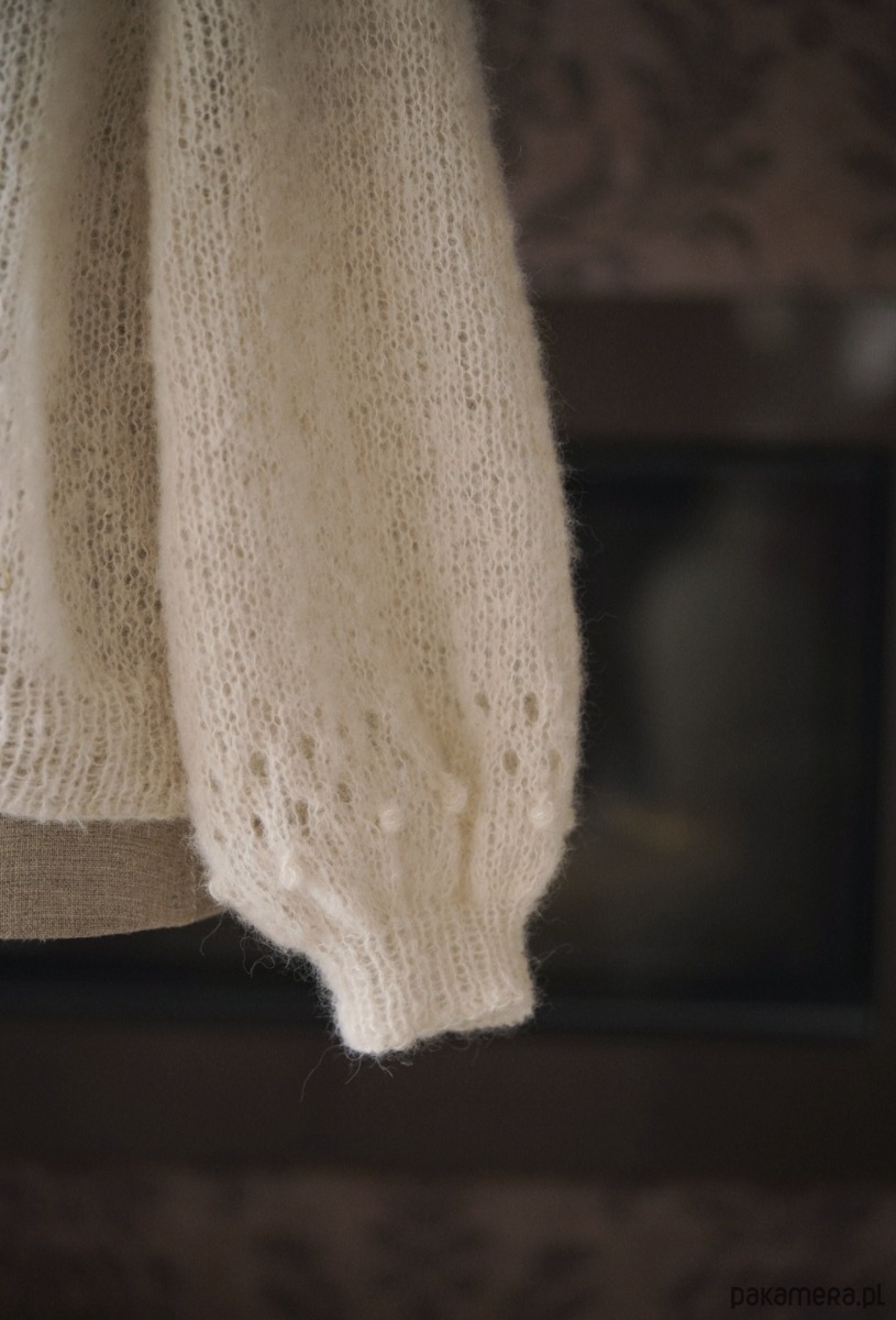 Ten kremowy model z delikatnym ażurem i popcornowymi kuleczkami pasuje zarówno do rustykalnych, codziennych stylizacji, ale wzbogacony kolorowymi akcesoriami nabierze wyjątkowego charakteru.